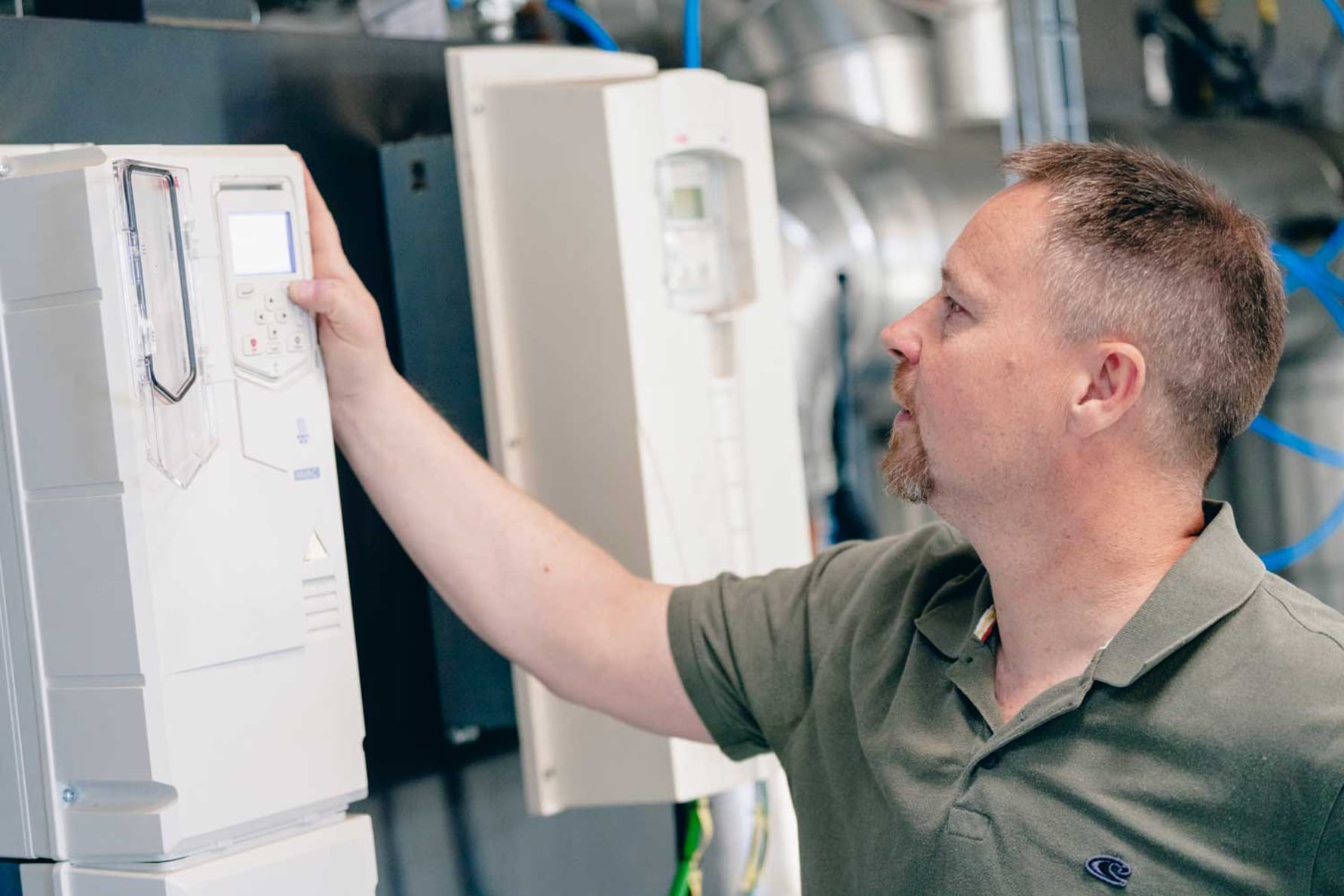 “Brugervenlighed er en vigtig faktor i vores varmesystem. Jeg synes, at betjeningen af f.eks. anlæggets ABB-frekvensomformere på grundvandspumperne har en utrolig intuitiv betjening. Brugerfladen er designet til at være enkel og nem at navigere i, hvilket gør det let for os at sætte systemet i drift uden at skulle læse omfattende instruktionsmanualer, ” lyder det fra driftslederen.