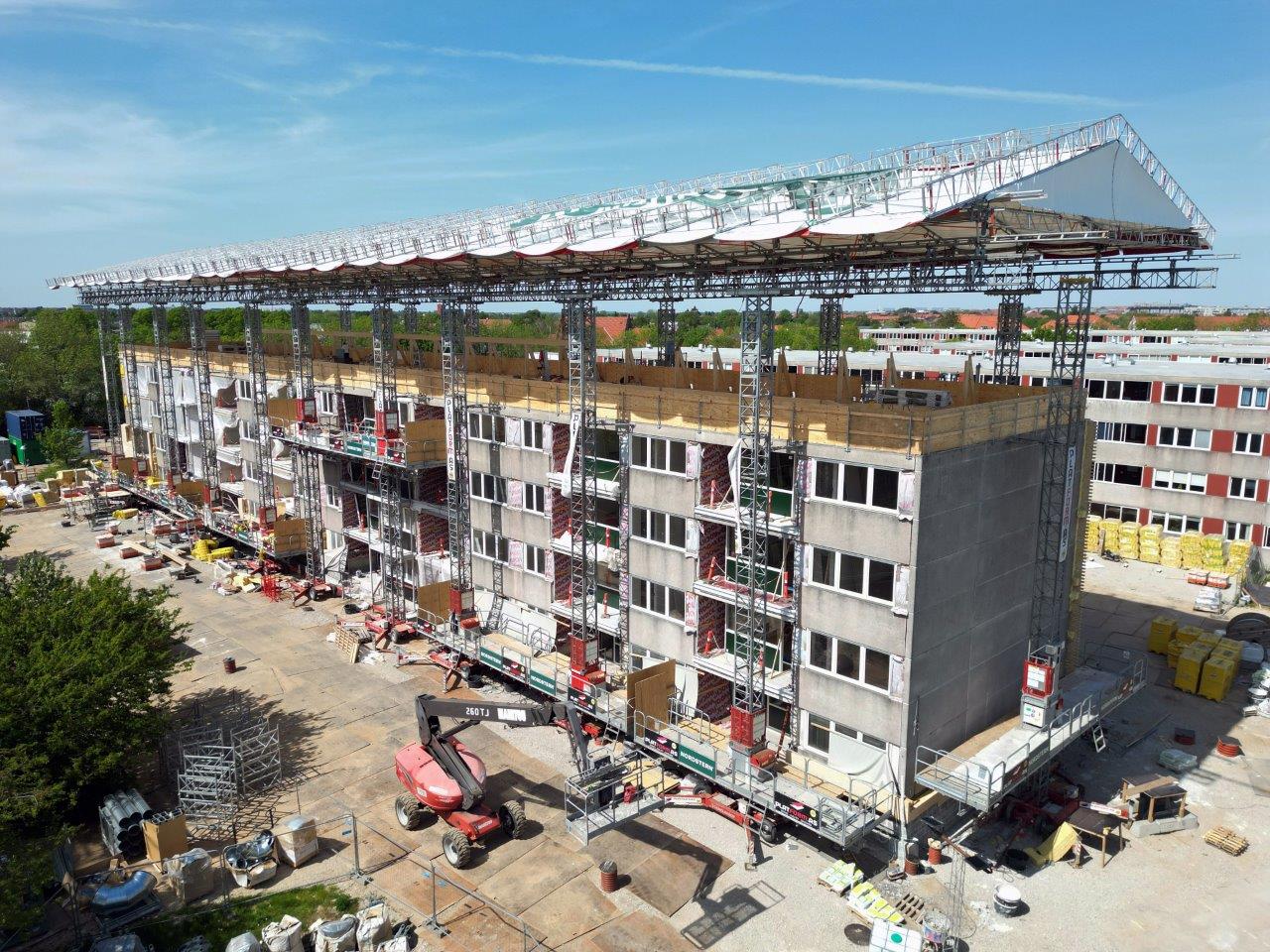 Platform.as - Renovering i Valby: Totaloverdækning opført med arbejdsplatforme udlejet i Nordstern i forbindelse med et renoveringsprojekt i Valby. Platform.as er i disse dage ved at opføre samme løsning for Nordstern på den næste boligblok i Valby, der skal renoveres.