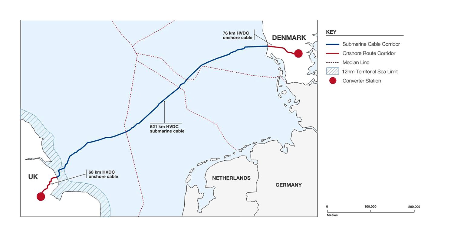 - Kablerne er tilsluttet to omformerstationer – én i Revsing ved Vejen og én på engelsk side ved Bicker Fen i Lincolnshire.