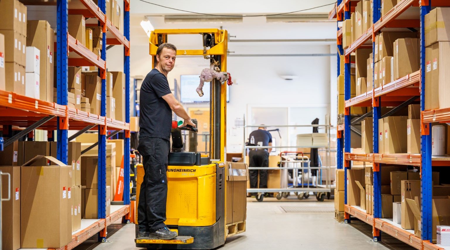 "Lagermedarbejderne arbejder som udgangspunkt to uger i forsendelse og en uge i varemodtagelsen. Det betyder, at alle kan varetage alle opgaver, og alle kommer til at arbejde sammen på et tidspunkt. Det sikrer, at vi kan klare opgaverne i travle perioder og ved sygdom. Men det giver også variation i hverdagen, som både jeg og de andre medarbejdere sætter stor pris på," siger Jan Smedegaard, som er lageransvarlig hos Filterteknik på 14. år.