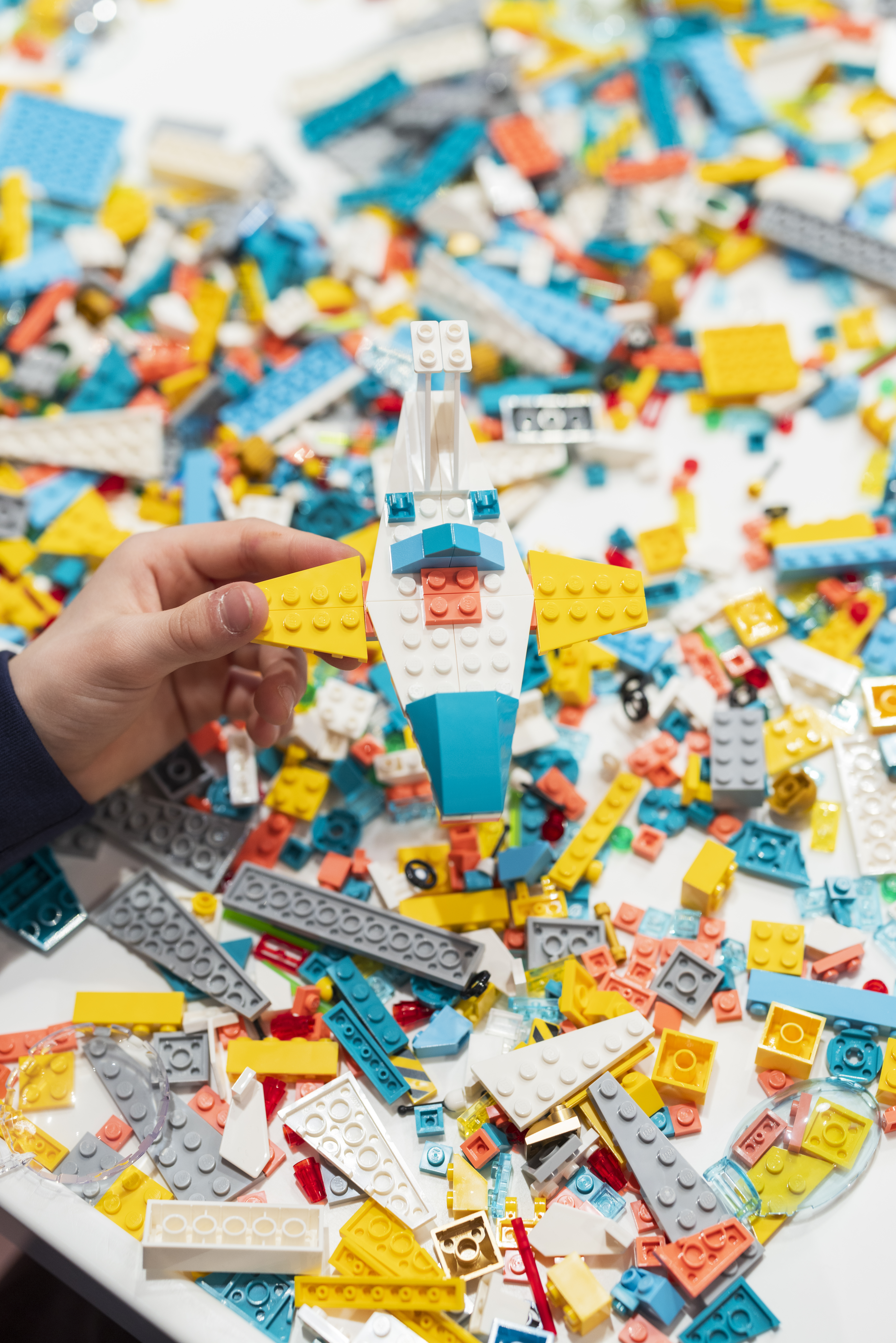 Når du er færdig med at udforske rummet i udstillingen på LEGO Square, fortsætter rumeventyret i LEGO House’s Oplevelseszoner og Creative Lab. Her kan du kaste dig over opgaven med at bygge dit eget rumskib.