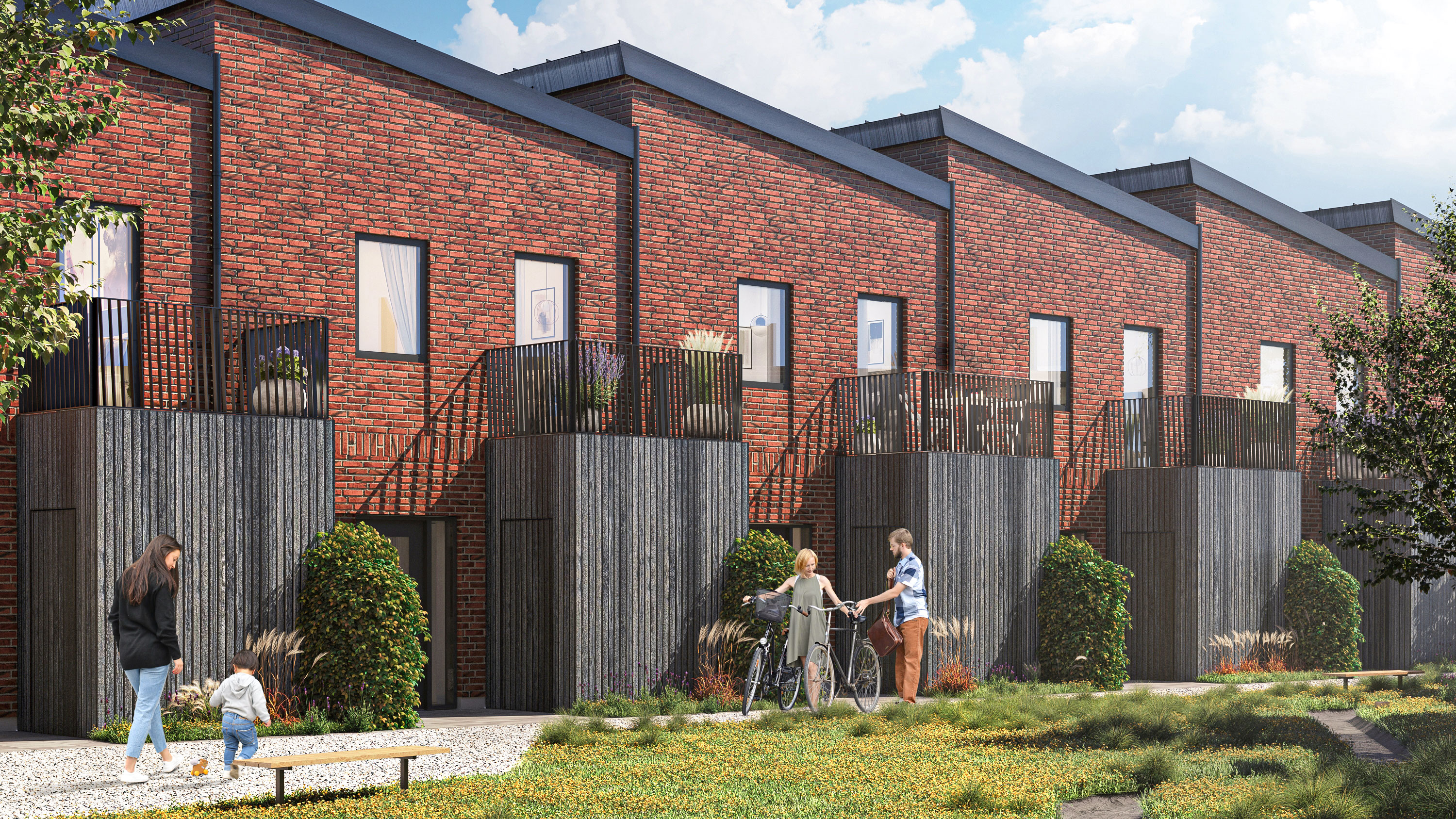 Rækkehusene bliver på to forskellige størrelser, cirka 95 og 115 kvadratmeter, fordelt på henholdsvis to og tre etager med fire og fem værelser. Boligerne, der forventes opført i februar 2025, får deres egen lille terrasse og balkon. Herudover bliver der anlagt 75 parkeringspladser.