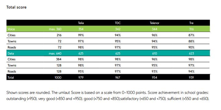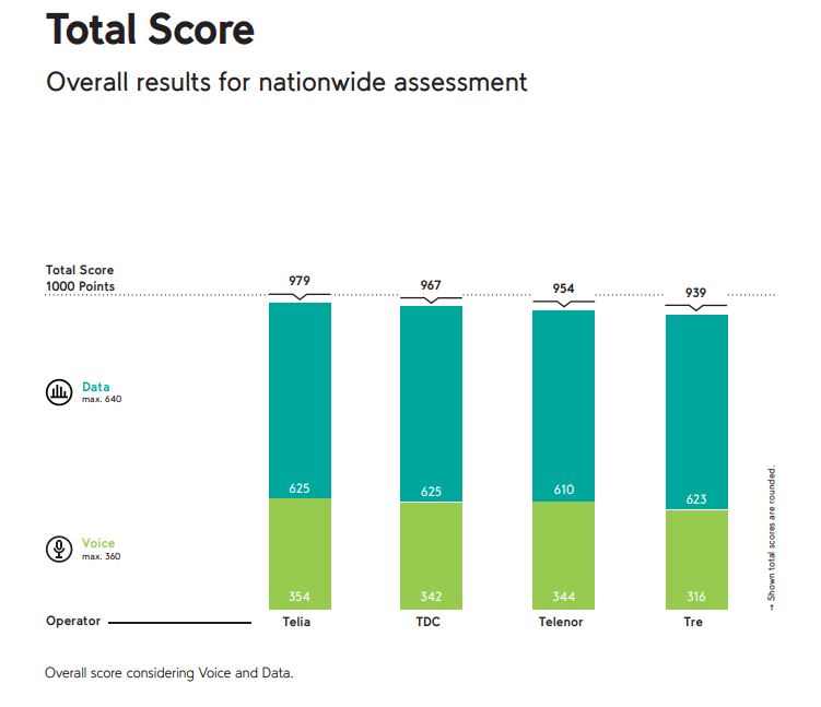 - På landsplan opnår Telia den højeste samlede score på 979 point ud af 1000 mulige