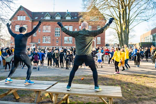 Mens 9. klasserne sidder og sveder over afgangseksamen i dansk retskrivning og læsning, snører deres yngre skolekammerater løbeskoene for at svede i en god sags tjeneste.