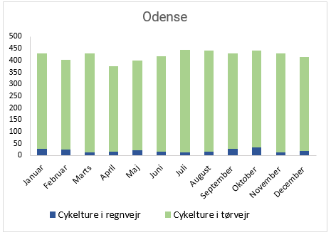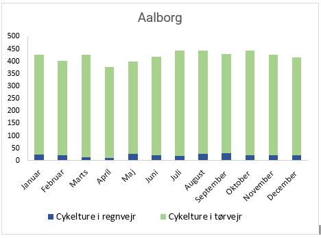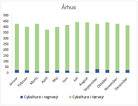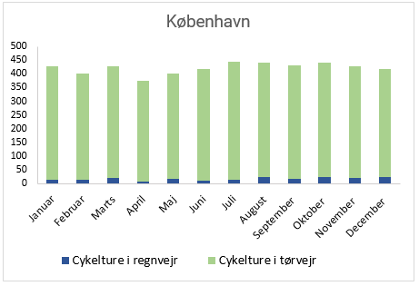 - Helligdage og weekender er ikke inkluderet i beregningen, hvilket giver 5.054 cykeldage i statistikken