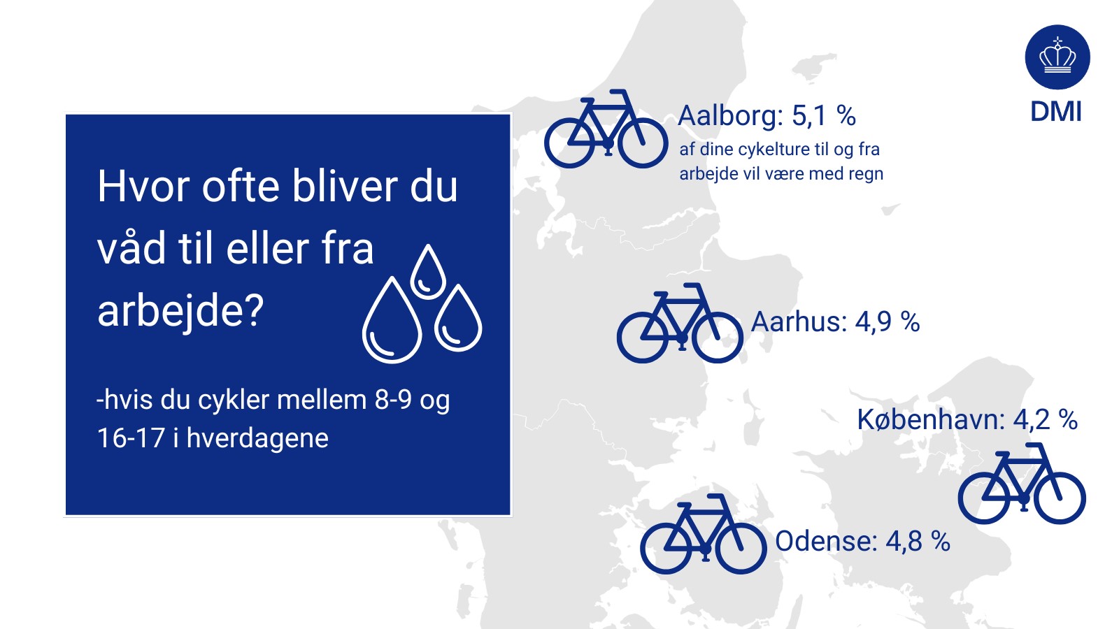 Vejret har stor indflydelse for mange af os på, om vi tager cyklen, bilen eller bussen til og fra arbejde. Hvis vi undlader at kigge på temperaturen, som også kan holde nogen fra at sætte sig op på jernhesten, så er nedbøren (eller frygten for samme) det, der kan tage den ellers gode intention fra mange.
