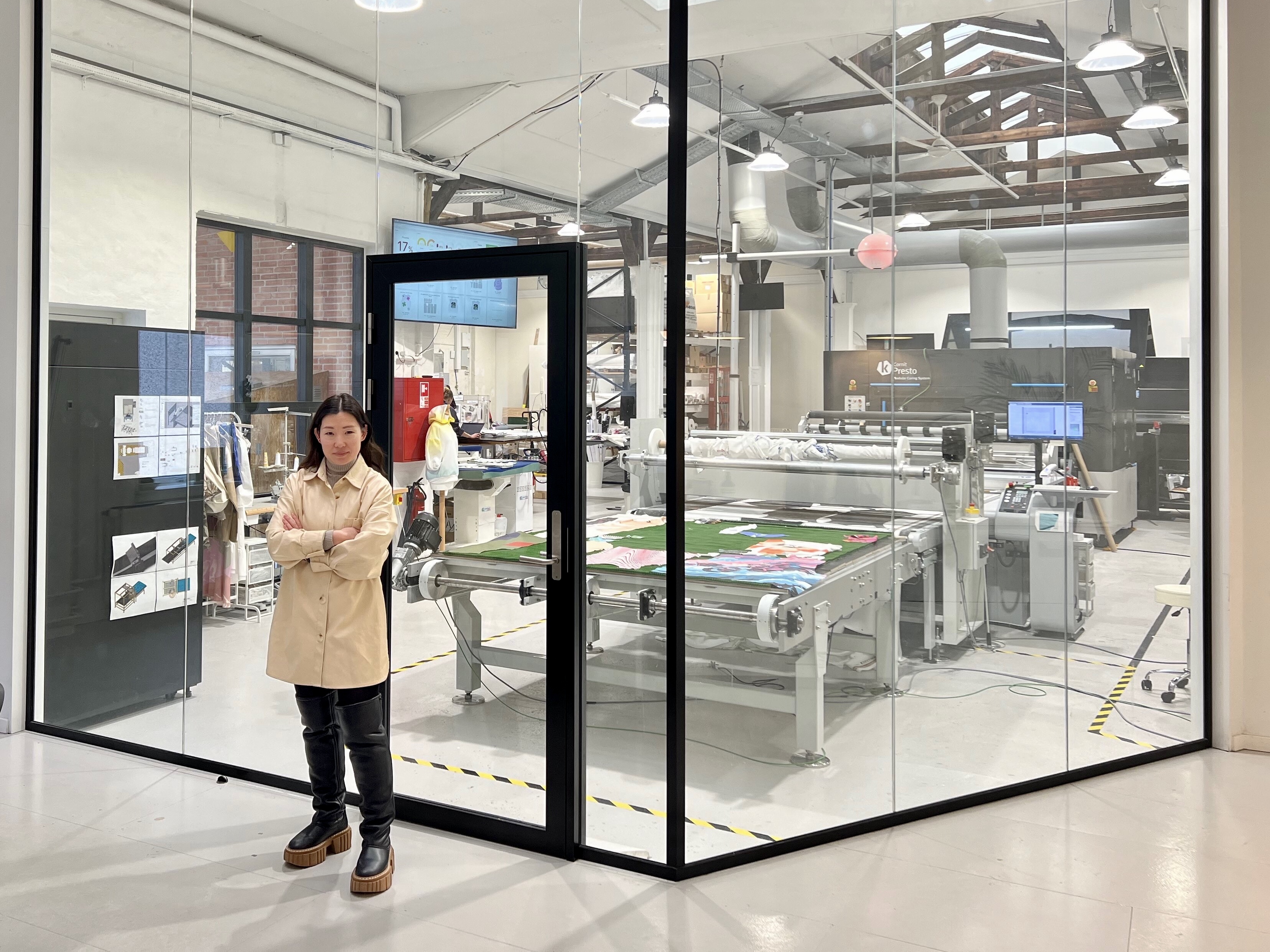 "Siden 2021 har vi haft vores første mikrofabrik kørende midt i København. Vi tillader kun miljøvenlige certificerede kvalitets tekstiler, som vi farver, hærder og udskærer i en automatiseret proces, helt uden brug af vand og farlige kemikalier. Derefter får vi tøjet syet lokalt," siger hun videre og påpeger, at det er et paradigmeskifte i en branche, der i dag forsøger at pynte på en forældet forretningsmodel, hvor man designer, fremstiller og derefter sælger varen.