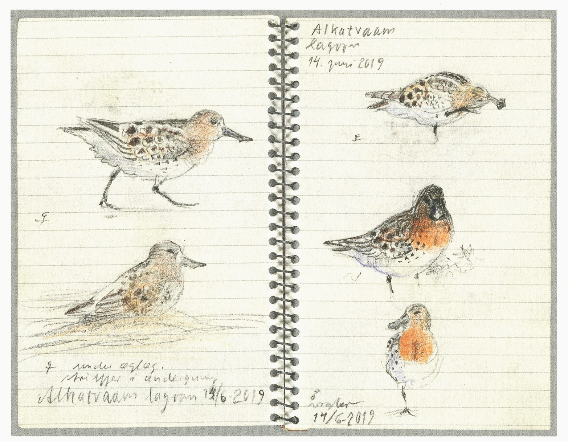 Fugletrækket sætter følelser i gang hos de fleste - foruden svaler er de fleste vadefugle udprægede trækfugle og Gregersen erklærer sin kærlighed: ”… som det er med vadefuglene, de fineste af alle fugle, der kan trække så utrolig langt mellem deres ynglepladser i Arktis og deres vinterophold på europæiske og vestafrikanske vadehavskyster.” Det har bevæget Gregersen i mere end én forstand: Han har tilbragt i alt femten somre i klodens fjerneste arktiske egne, i selskab med internationale fugleforskere, ikke mindst i Nordøstsibirien. I bogens andet kapitel ”REJSER” kommer vi bl.a. med til disse utilgængelige steder gennem stemningsmættede akvareller, inklusive nærportrætter af den lille sagnomspundne og udryddelsestruede Skeryle, som yngler i et begrænset kystområde i Nordøstsibirien. Man får straks lyst til at genbesøge Gregersens pragtstykke fra 2014 ”Arktisk Sommer” (Gyldendal).