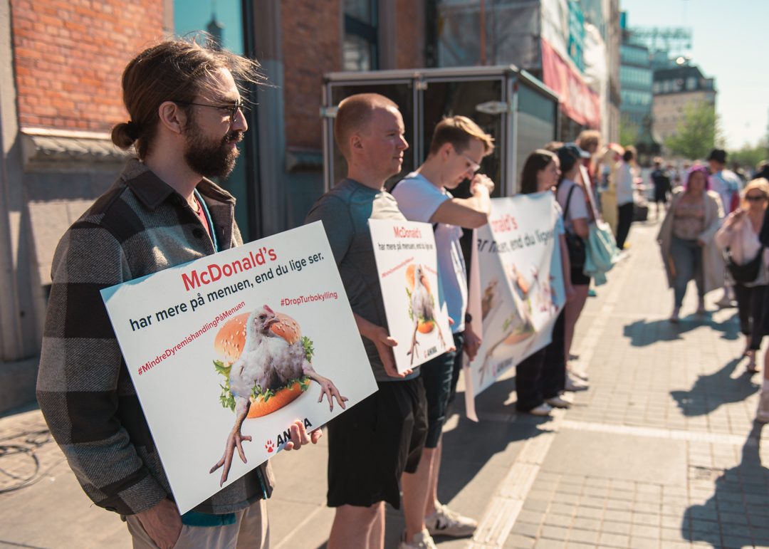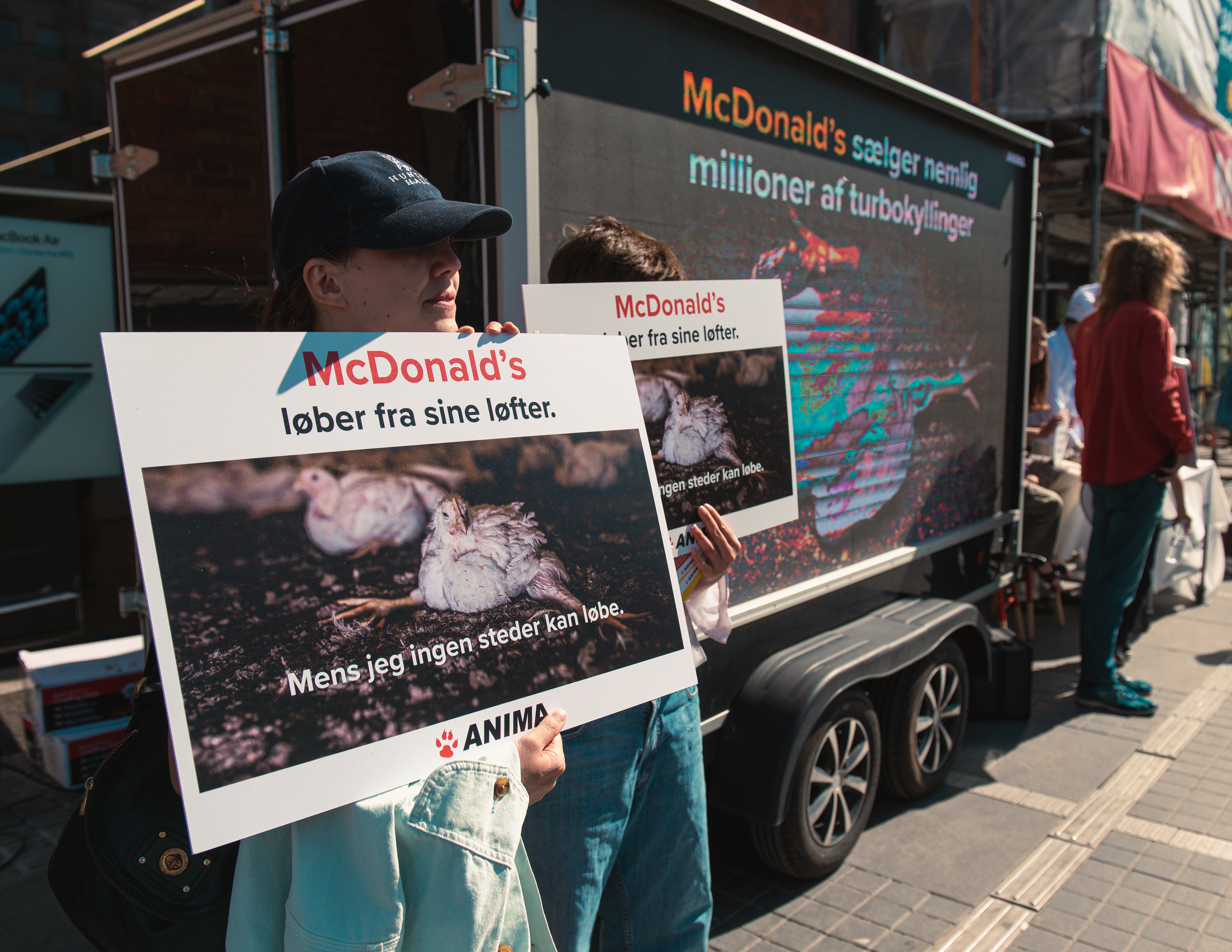 Protesten var led i et større fremstød lanceret af dyreværnsforeningen Anima, som i en ny kampagne kritiserer McDonald’s for at løbe fra sit løfte om at udfase turbokyllinger. McDonald’s erklærede ellers i 2020 efter konstruktiv dialog med Anima, at alle turbokyllinger ville være taget af menuen inden 2024. Men uden et eneste pip er kæden vendt fuldstændigt på en tallerken, og det vækker harme hos Anima: