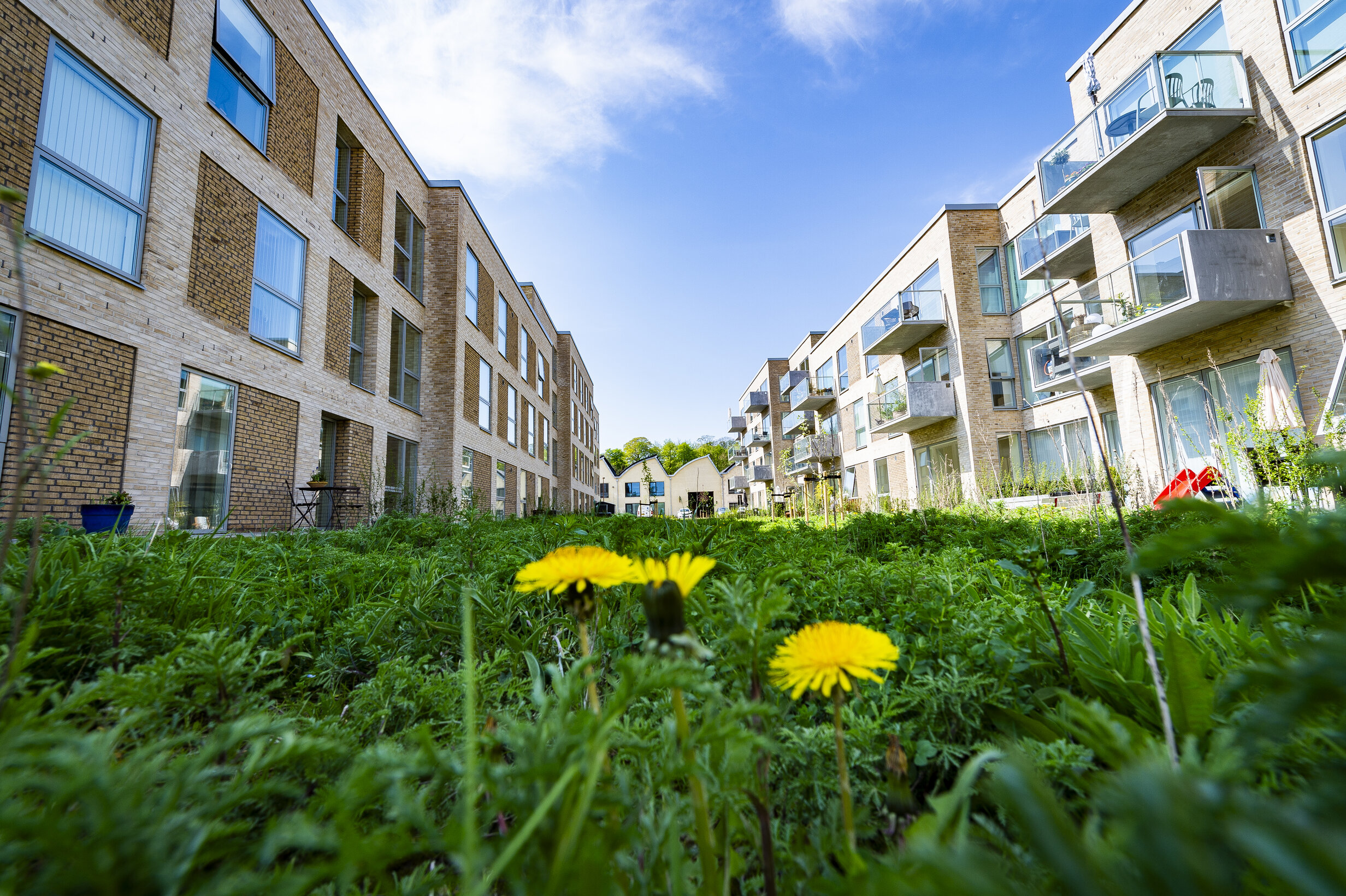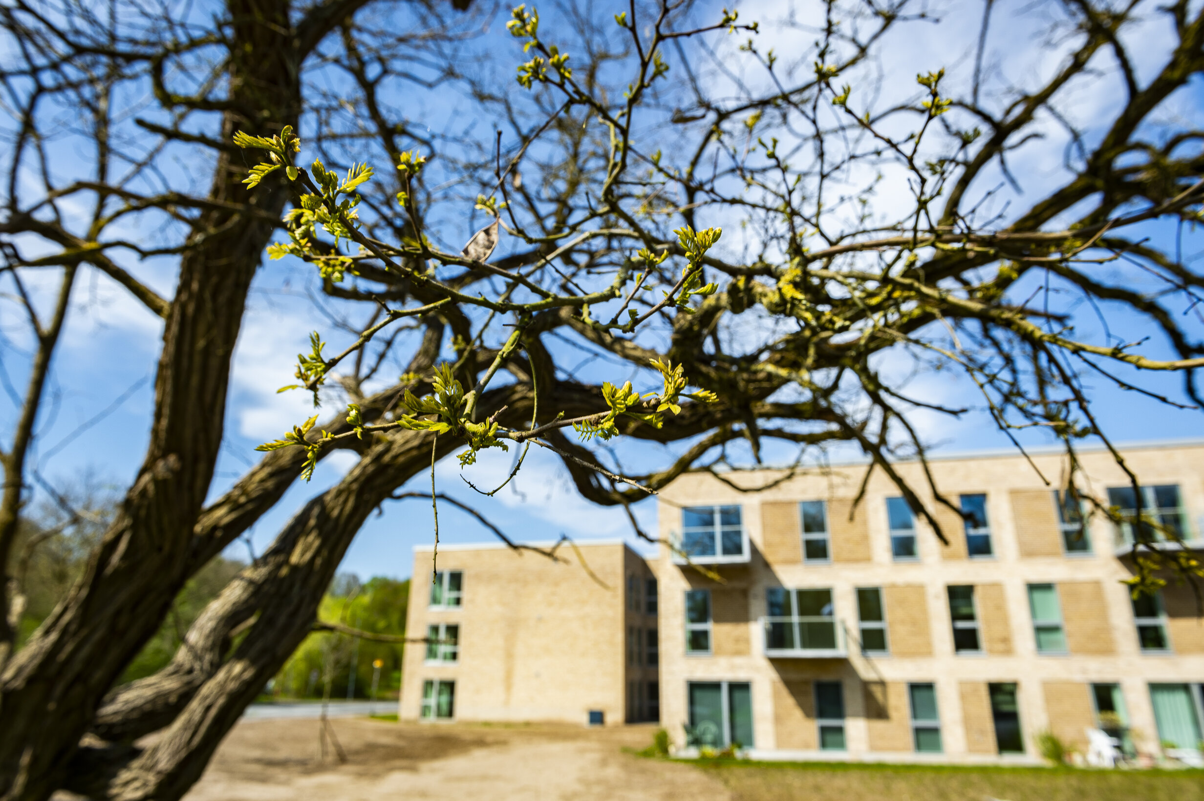 I det hele taget er foråret for alvor kommet til Dalum Papirfabrik. Frederik Østergaard Kristiansen, projektudviklingsdirektør i MT Højgaard Property Development, tilskriver det især det faktum, at bydelen nu for alvor er ved at stå færdig.