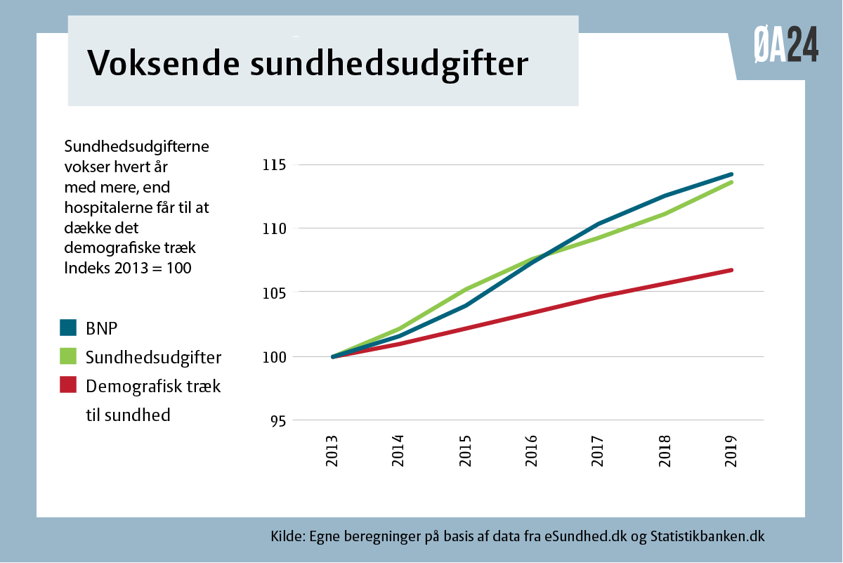 - I Danmark har væksten i sundhedsudgifterne og i BNP mellem 2013 og 2019 været på 13-14 procent.