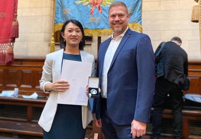 Yi Chan Xing, eller bare Chan som vi kalder hende, fik en sølvmedalje overrakt ved et festligt arrangement på Københavns Rådhus den 7. maj. Samtidig modtog Chan to legater - det ene fra Kjøbenhavns smedelaug - KSL og det andet fra FTLU – Lærlingeforeningen.