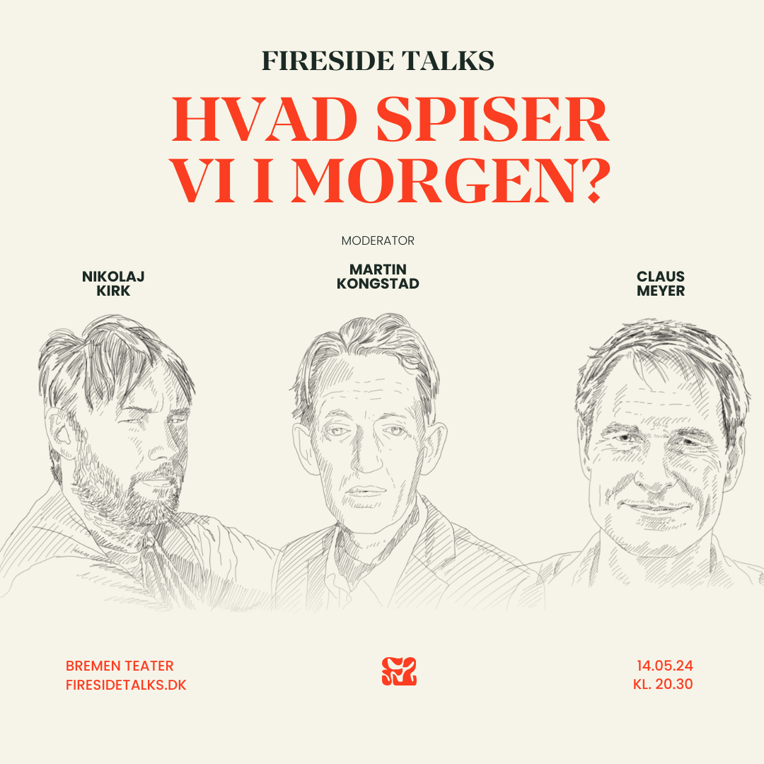 Det med at bringe noget til bordet er topaktuelt, når Fireside holder premiere på det vokseværkende format. Med forfatter Martin Kongstad som kampdommer mødes to af dansk gastronomis markante meningsmagere og anekdotiske maestroer, Nikolaj Kirk og Claus Meyer, på Bremen Teater tirsdag d. 14. maj. Her skal de gå hinandens karrierer efter i menukortene og give et bud på fremtidens madtrends.