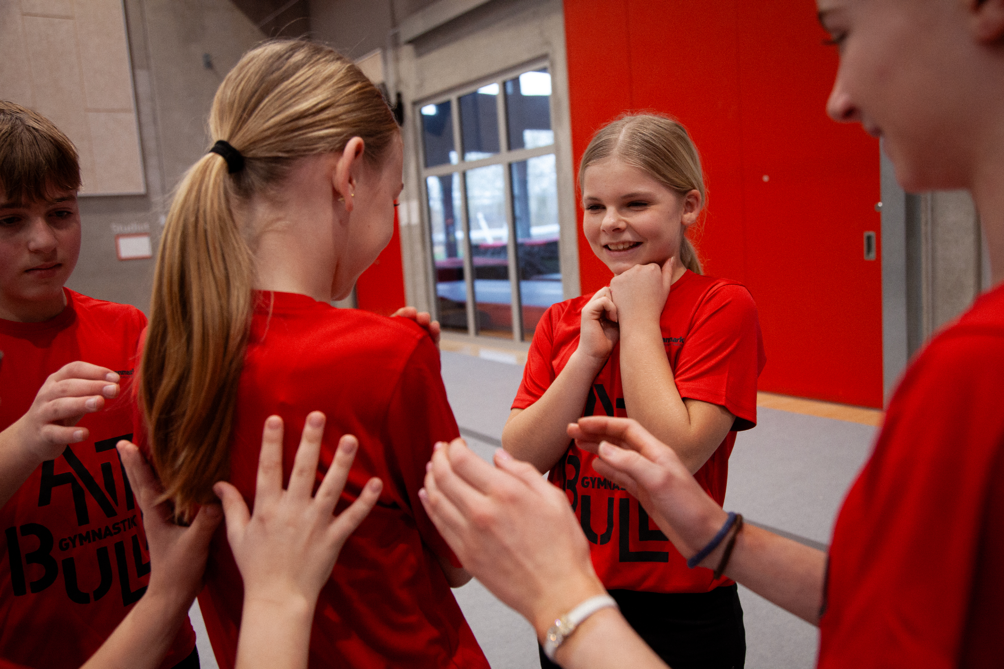 Til gymnastiktræning skal børnene ikke kun lære at kaste sig ud i nye spring, de skal også lære at være en god ven og have øje for at hjælpe hinanden ind i fællesskabet.