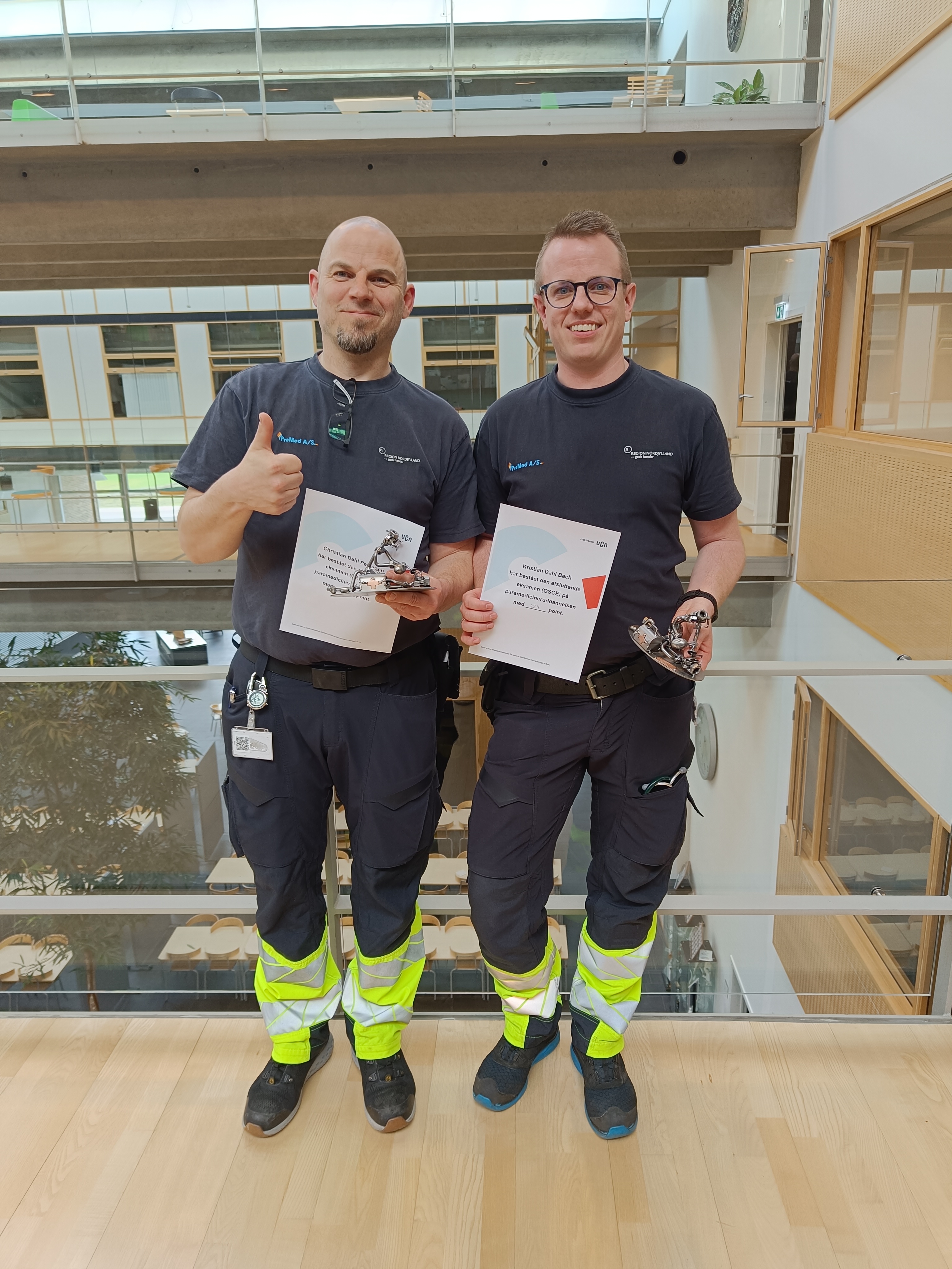Midt ny er to ambulancebehandlere – Kristian fra Frejlev og Christian fra Thy – blevet paramedicinere. Louise fra Hadsten, som nu bor i Nørresundby, har også bestået sin svendeprøve som ambulancebehandler.