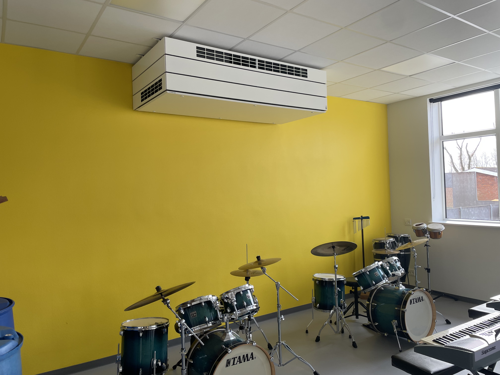 ”Det så jeg kun som en kæmpe fordel. For det første slap vi for at skulle rykke taget af, for det andet kunne vi udvælge de lokaler, der trængte mest, uden at sætte hele skolen under renovering. Derudover er vi med de decentrale anlæg heller ikke afhængig af, at der skal være højt til loftet. Det hele spiller bare – det decentrale koncept passer perfekt til vores skole.”