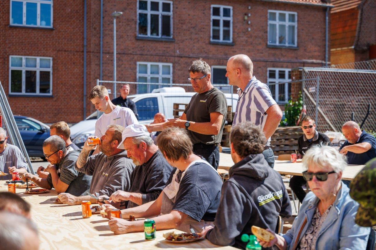 Skou Gruppens invitation blev godt modtaget. Mere end 60 mennesker fandt vej til buffeten og de to langborde i udkanten af byggepladsen i det fine forsommervejr.