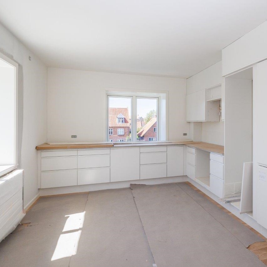 Totalentreprisen, som blev påbegyndt i april sidste år, omfatter en meget gennemgribende modernisering og energirenovering fra yderst til inderst og kælder til kvist af to af Byg33’s ældre boligejendomme i Holbæk.
