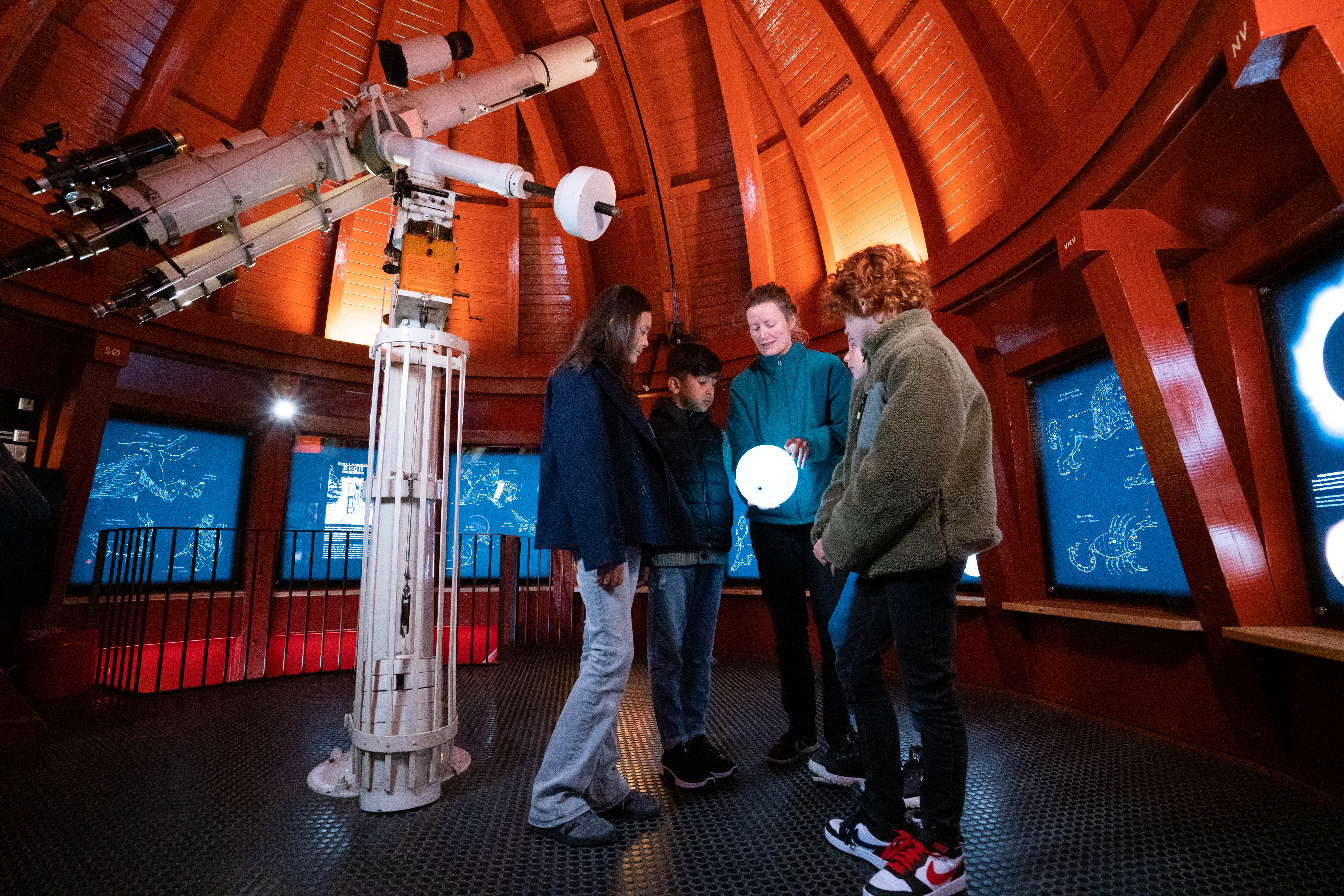 Sammen med Christina Toldbo skal Astroklubbens medlemmer over seks klubaftener mellem oktober og marts blive klogere på Universet og selv prøve at observere Månen og planeterne fra det gamle teleskop i Observatoriet på tårnets top.