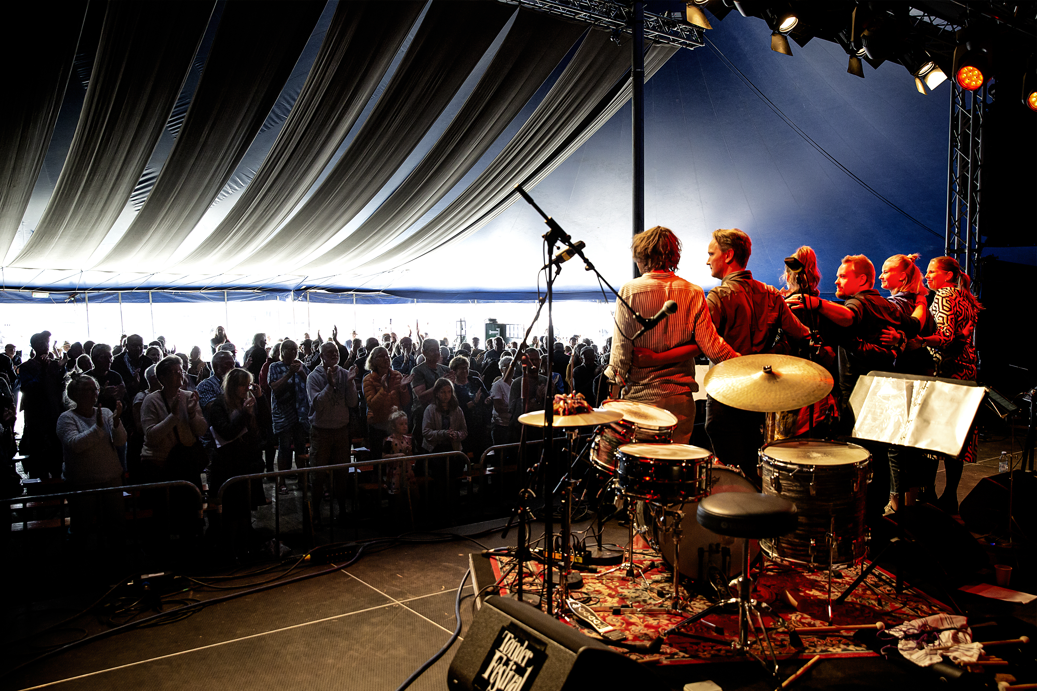 Det er efterhånden en tradition, at KUNSTEN AT GLÆDES I KOR spiller til morgensang på Tønder Festivalens sidste dag. I år bliver dog ganske særligt. I anledning af Tønder Festivals 50-års jubilæum vil repertoiret også byde på ikoniske sange fra festivalens historie. Derudover spænder repertoiret vidt med en særlig forkærlighed for sange fra Vadehavet.