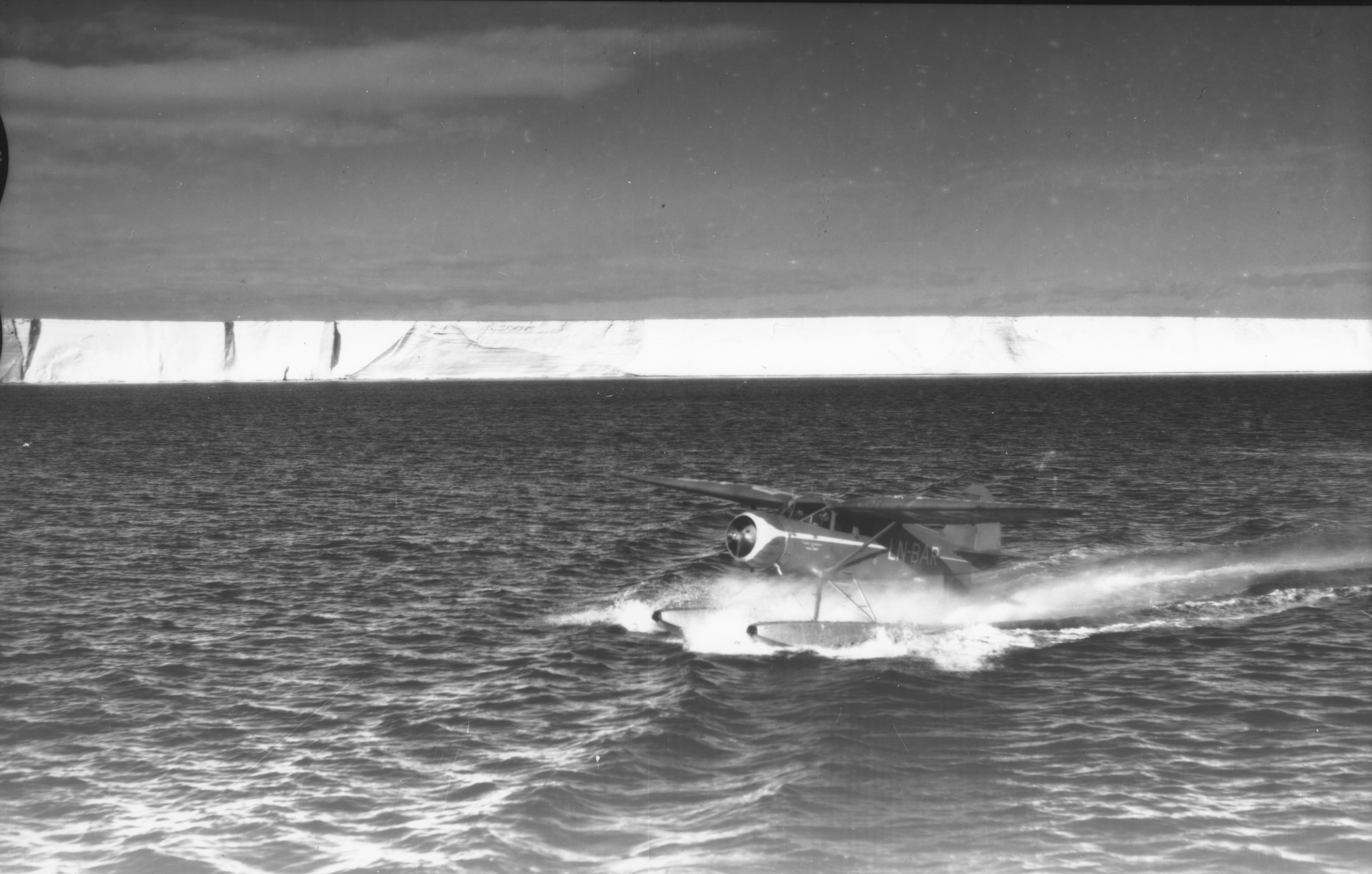 Et Stinson Reliant potonfly (callsign LN-BAR) blev brugt til luftfotografering. Flyet havde en rækkevide på omkring 1200 km og et automatisk Zeiss kamera var monteret i flyets gulv. Copyright Norske Polar Institut