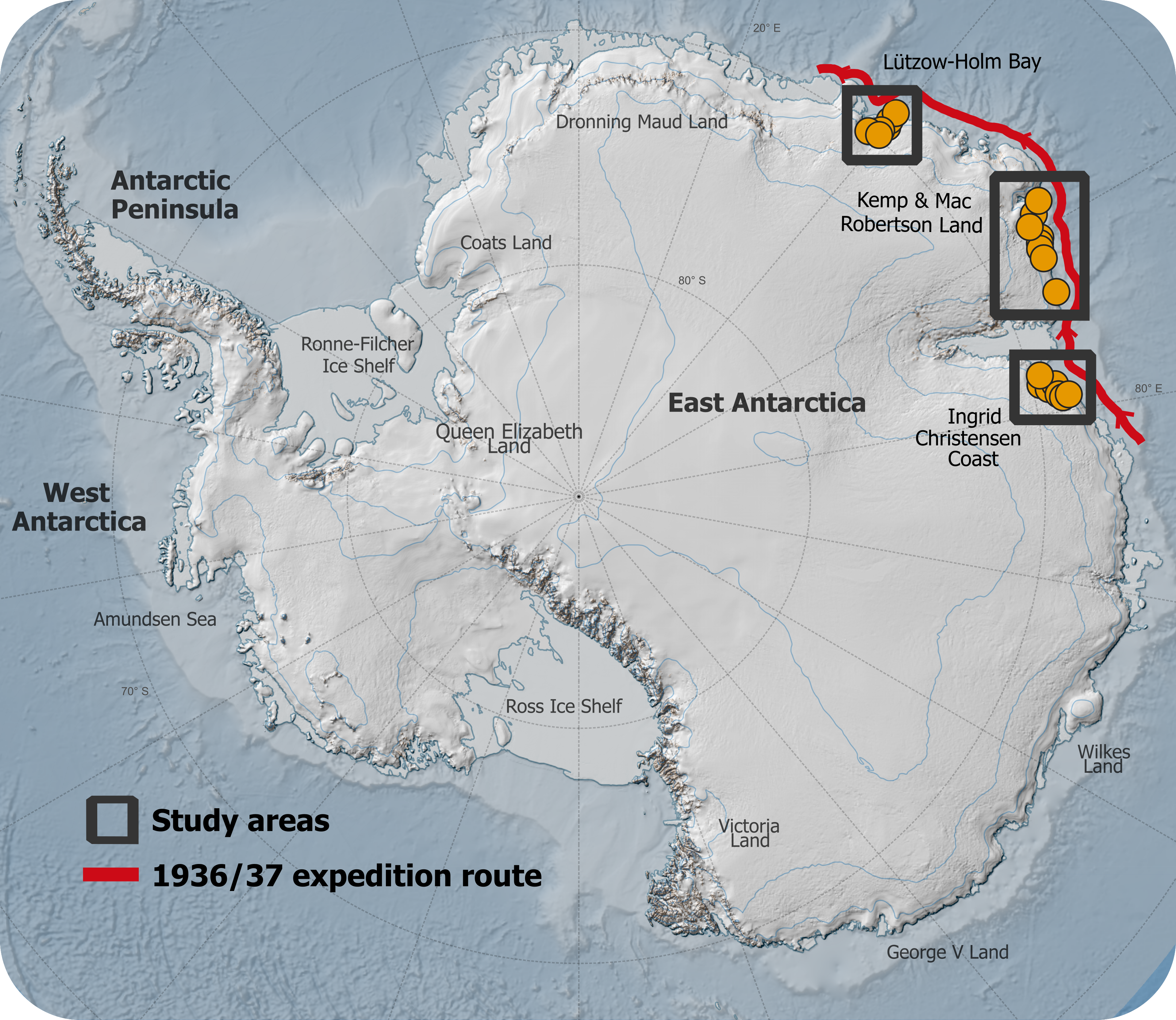 Størstedelen af de billeder, som studiet er baseret på, er taget på en ekspedition fra 1937 arrangeret og betalt af den norske hvalfanger Lars Christensen. Missionen var at fremstille de første landkort over denne del af Østantarktis. Kortene blev dog aldrig offentliggjort på grund af 2. verdenskrig og tyskernes invasion af Norge. Siden da har billederne ligget opbevaret hos det Norske Polar Institut i Tromsø og var glemt.