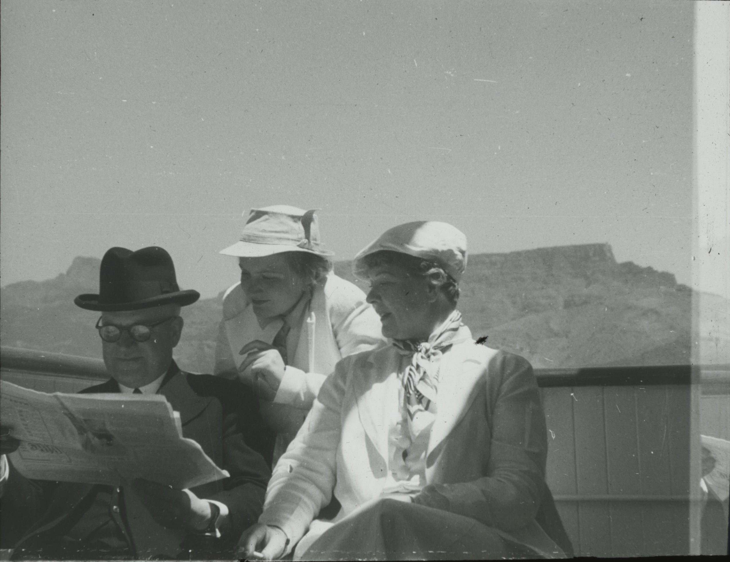 Lars Christensen, Ingrid Christensen og deres datter ombord på M/T Thorshavn ud for Cape Town, Sydafrika, på vej mod Antarktis. Copyright: Norske Polar Institut