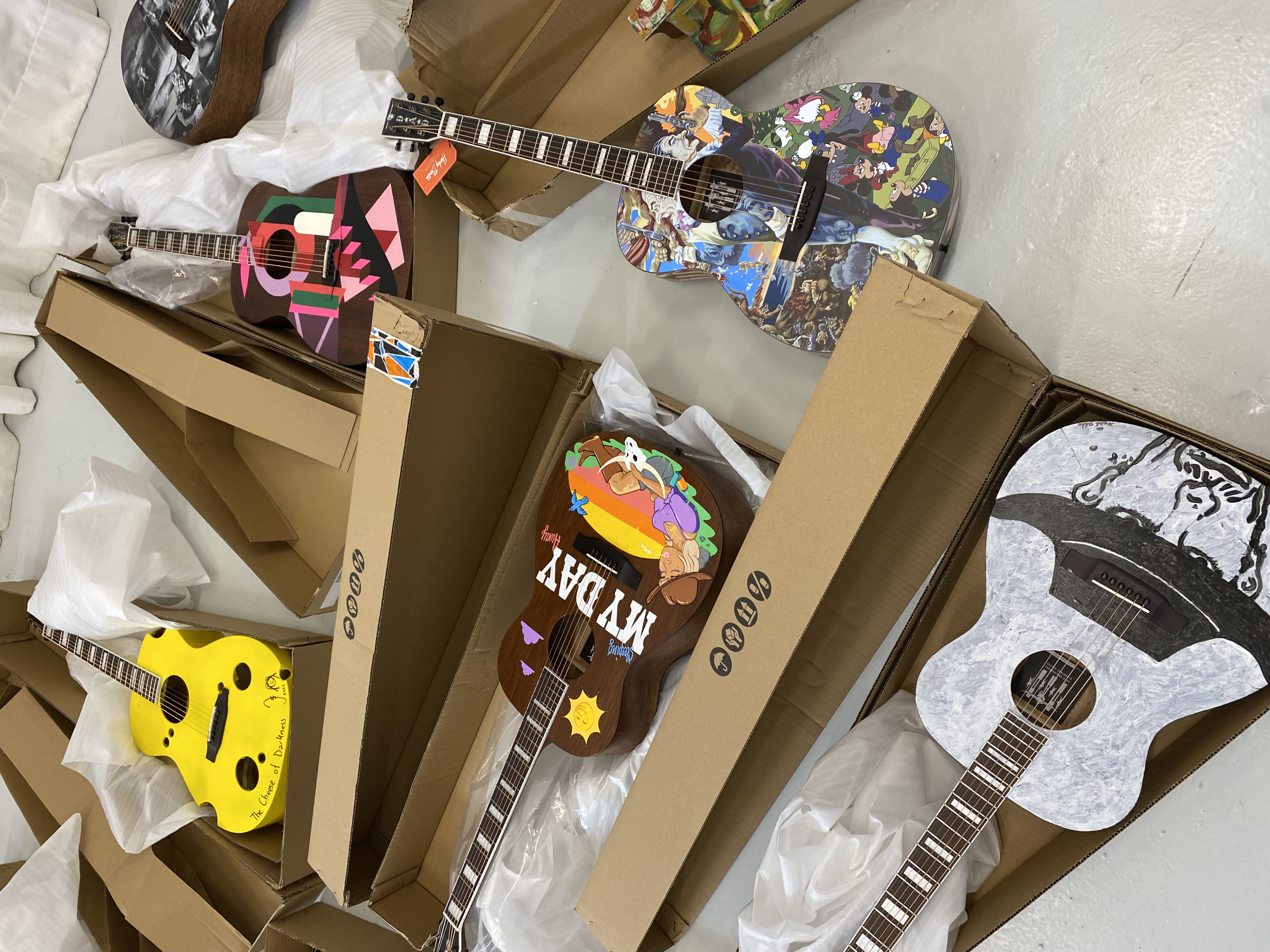 D-A-D, Red Barnet og Jens-Peter Brask bortauktionerer 40 kunstnerdekorerede guitarer