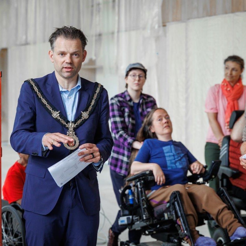 ”Vi får et handicaptoilet, som er offentligt, og som der stadig ikke findes mange af her i landet. Det kan benyttes af kørestolsbrugere, som ellers ikke kan benytte toiletter uden hjælp. Og som jeg forstår det, kommer det til at optræde på Google Maps ligesom fx hjertestartere,” sagde Laurits Roikum og takkede bl.a. Sarah Glerup fra følgegruppen. Hun er kørestolsbruger og har været fortaler for netop denne indretning.