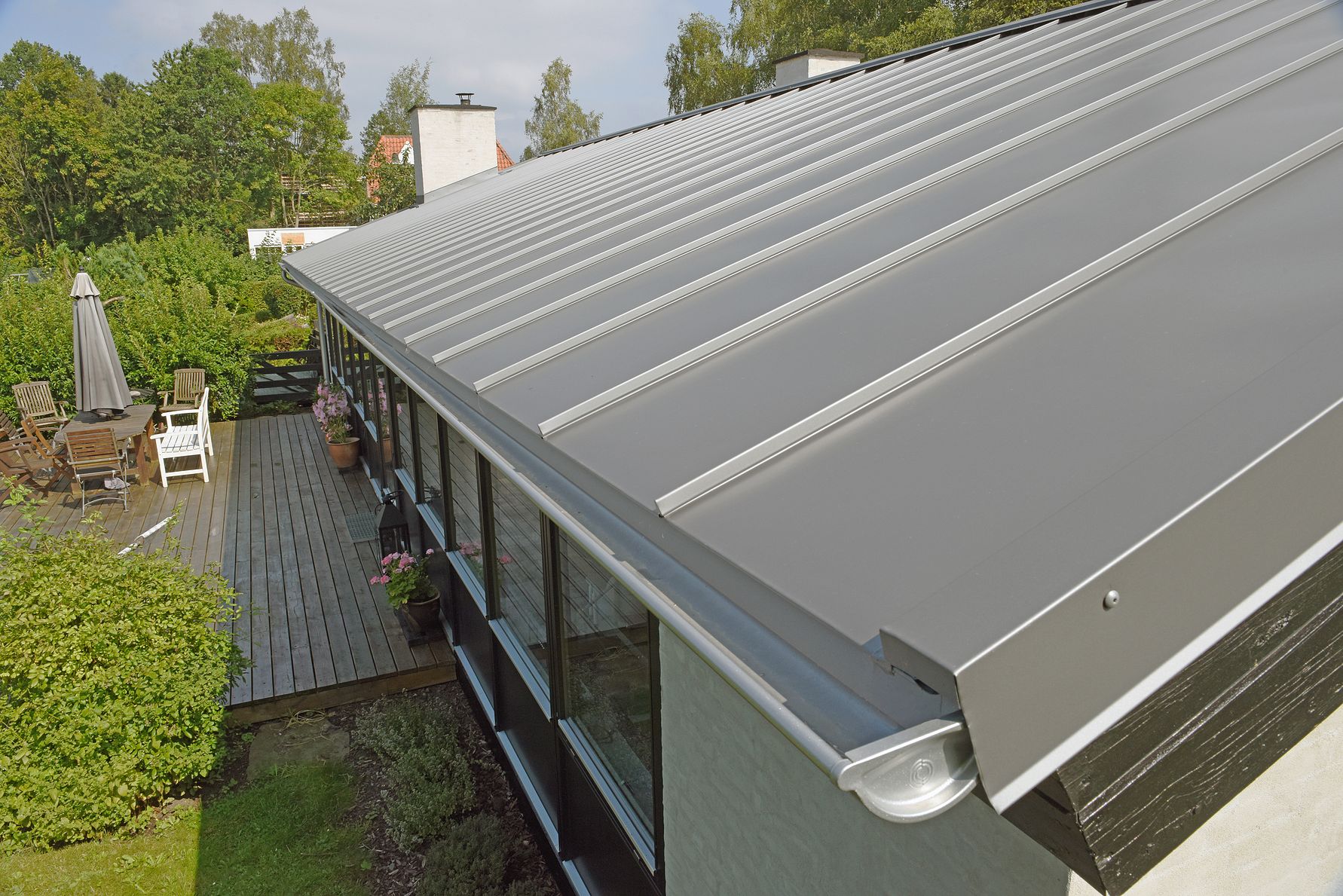 ”Husejeren havde et skifereternittag, og en af fordelene ved et kliktag er, at man kan lade skifereternittaget ligge og bygge kliktaget ovenpå. Så det gjorde vi. Husejeren valgte også et kliktag, fordi han synes det er meget arkitektonisk, og hele konceptet med, at vi er specialiserede inden for Lindab tagløsninger gav ham tryghed,” fortæller Kurt Schmeltz.