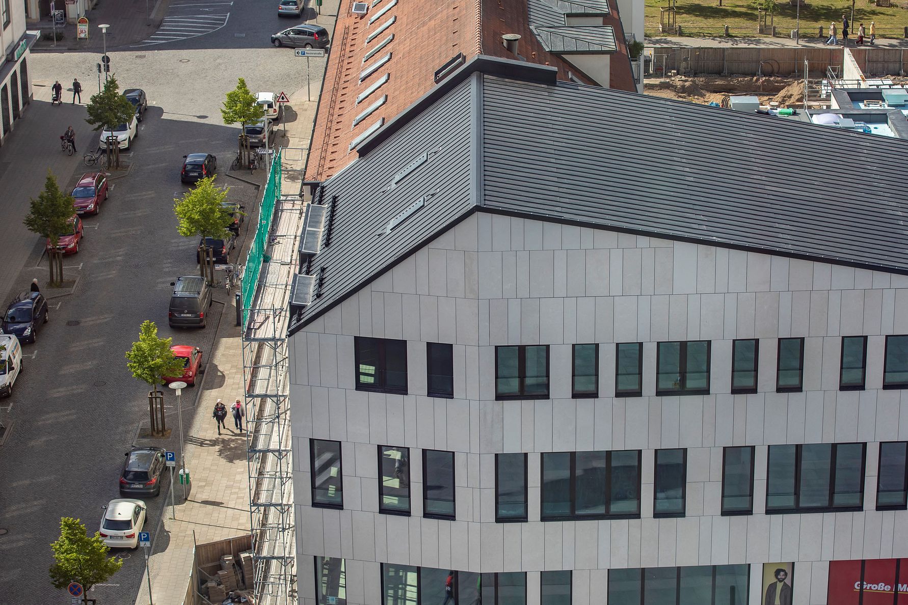 Det stiller store krav til både æstetik og logistik, når man bygger centralt i en trafikeret by. Det var også tilfældet for det nye og centralt placerede indkøbscenter Marien-Carrée i Neubrandenburg i Tyskland. For at sikre en hurtig montage og et flot visuelt udtryk for både besøgende og forbipasserende faldt valget på en kliktagsløsning fra Lindab.