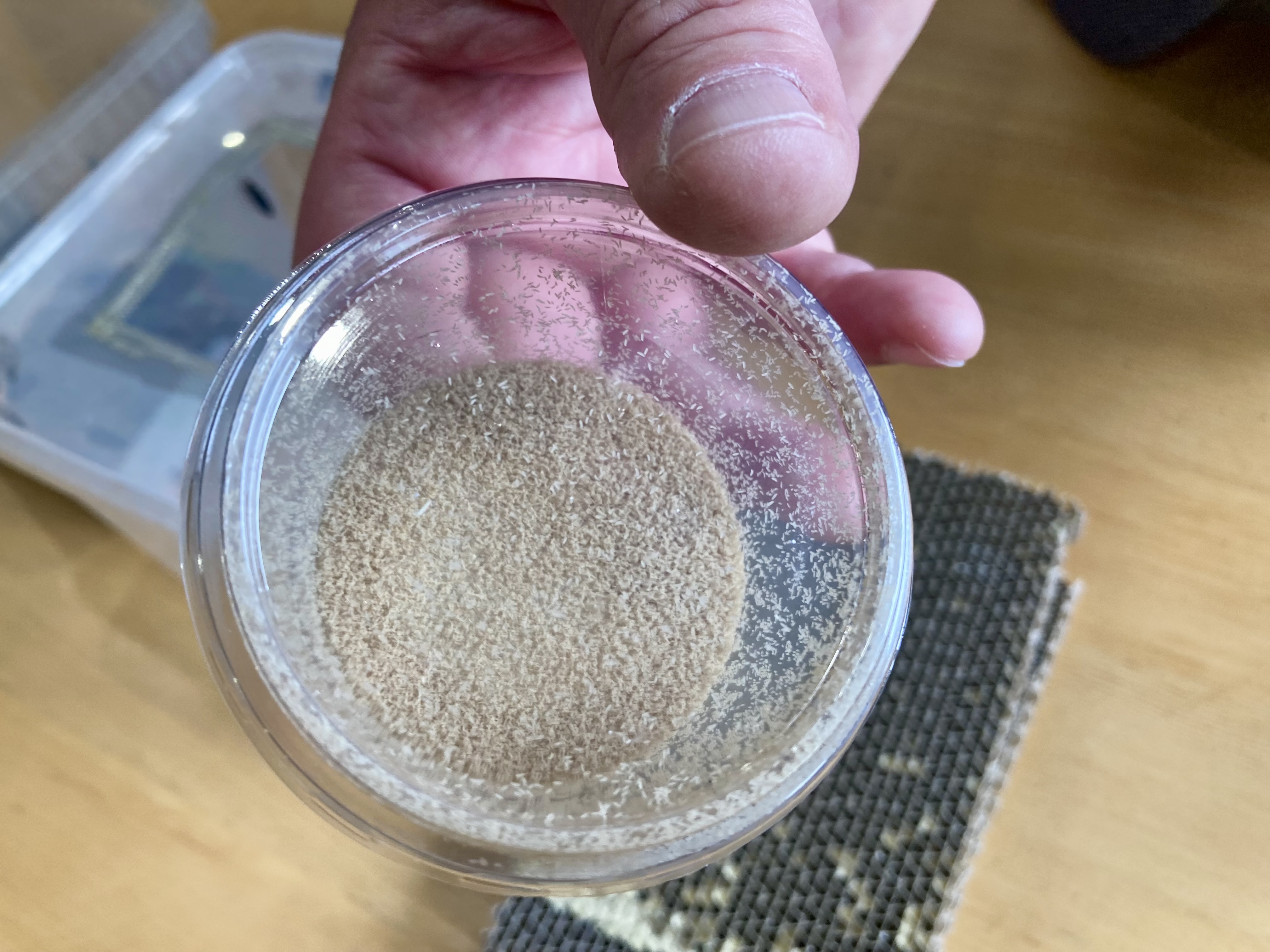 ”Næringsindholdsmæssigt er larveprotein jo egentlig det samme som et animalsk protein, ligesom når du spiser en flæskesteg, en mørbrad eller noget tredje, det her er bare tørret til mel. Det vil vi kunne raffinere yderligere, så det bliver fuldstændig smagløst. Det kan bruges i for eksempel pasta eller proteinbarer, hvor man vil tilføre protein, og her vil man ikke tænke på, at det er insekter, men at det er bæredygtigt og sundt, er jeg sikker på.”