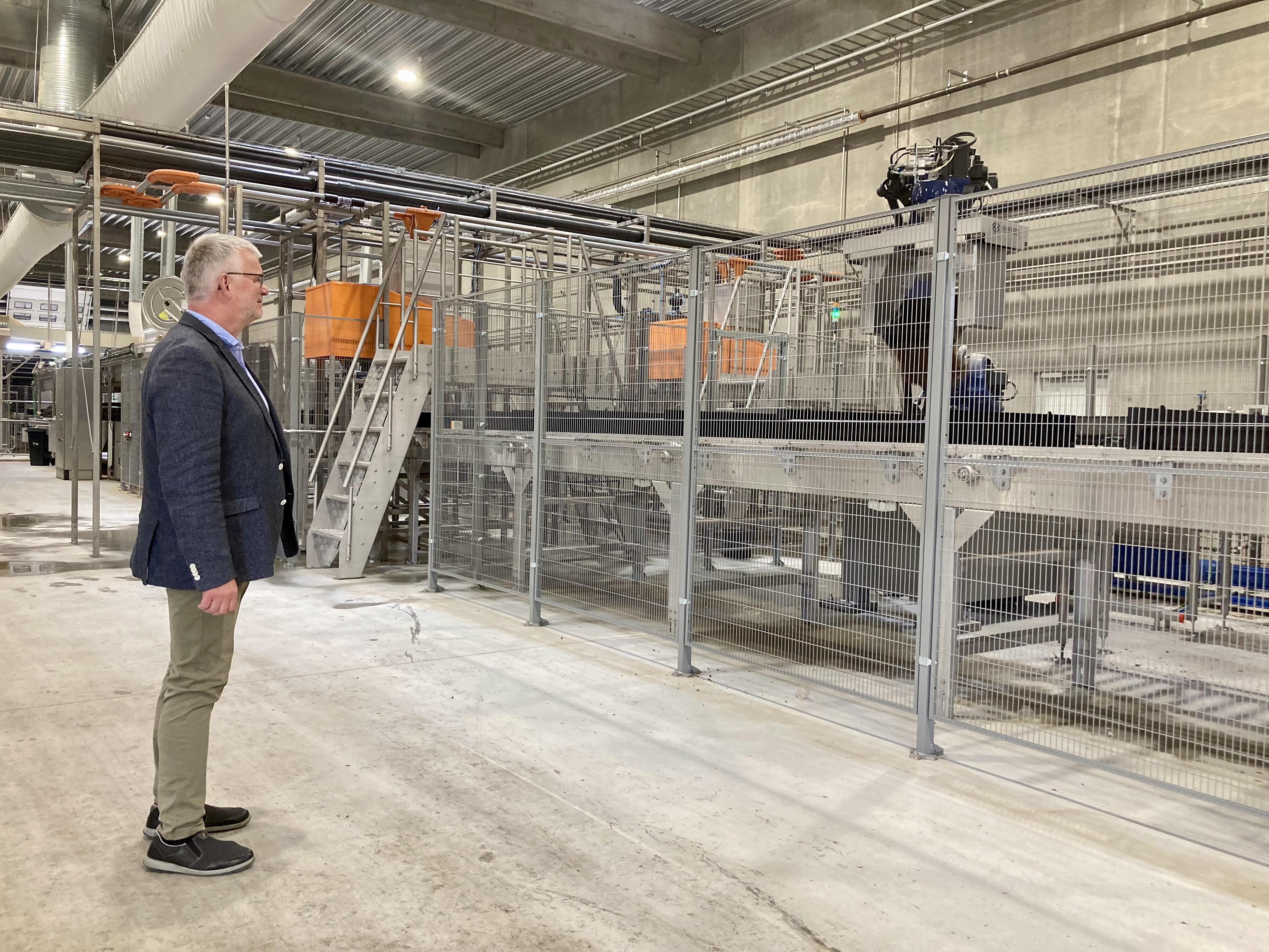 ”Det hele bliver dumpet i en stor kasse, og så bliver der lukket larver ned i. Fra restproduktet bliver placeret i kassen sammen med larverne, til der er et færdigt produkt, går der ca. 12 dage. I den tid er der ingen medarbejdere, der rører produktet, da det hele sker med robotter, så vores personale tjekker kun maskinerne. 1/3 af al den energi, vi bruger, kommer fra varmegenvinding, som vi selv har her på gården.”