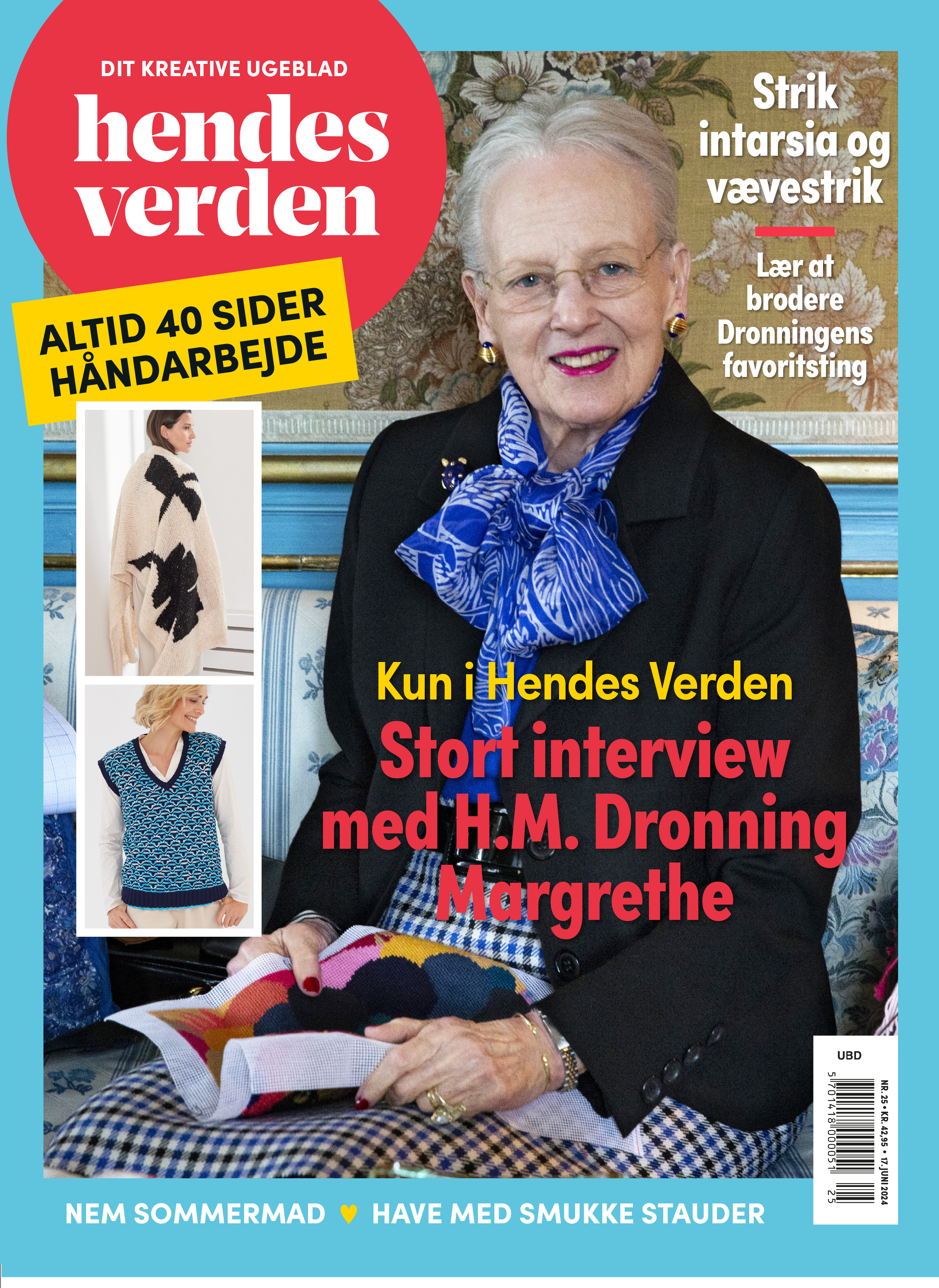 Ugebladet Hendes Verden bringer 17. juni et interview med Hendes Majestæt Dronning Margrethe. Her fortæller Dronningen om sin årelange interesse for broderi og glæden ved smukke farver.