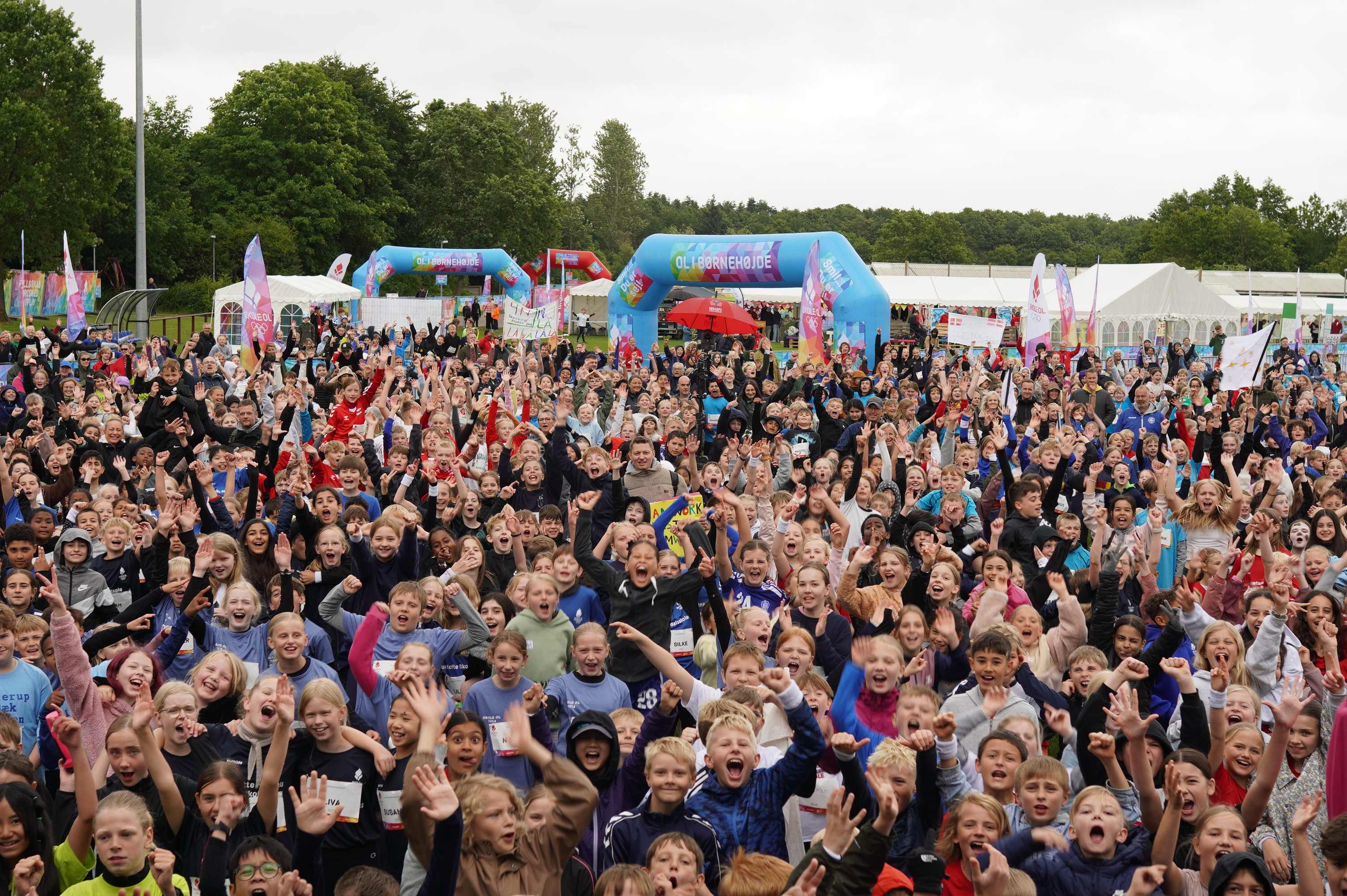 Kampråb, indmarch, olympisk ild og tusindvis af glade skoleelever fra hele Danmark indtog Billund Idrætscenter tidligere i dag.