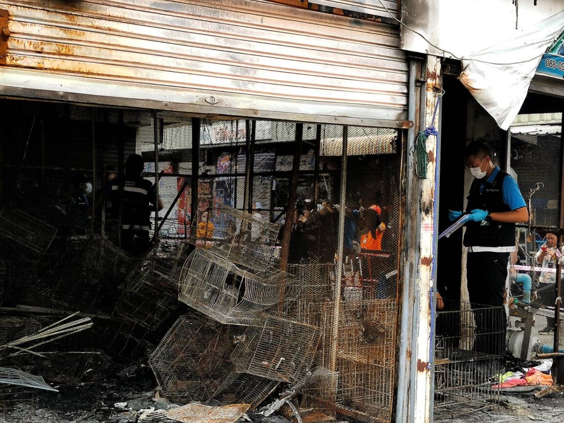En brand på et af de berygtede asiatiske dyremarkeder, der udstiller og sælger vilde og tamme dyr, mast sammen i små bure, kostede onsdag et ukendt antal dyr livet, skriver Bangkok Post, der også citerer lokale butiksejere for, at der formentlig er tale om mere end tusinde omkomne dyr.