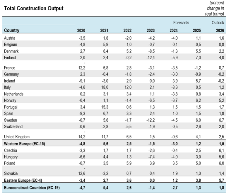 Europæisk byggesektor forventer fald i 2024, men vækst i horisonten for 2025 og 2026