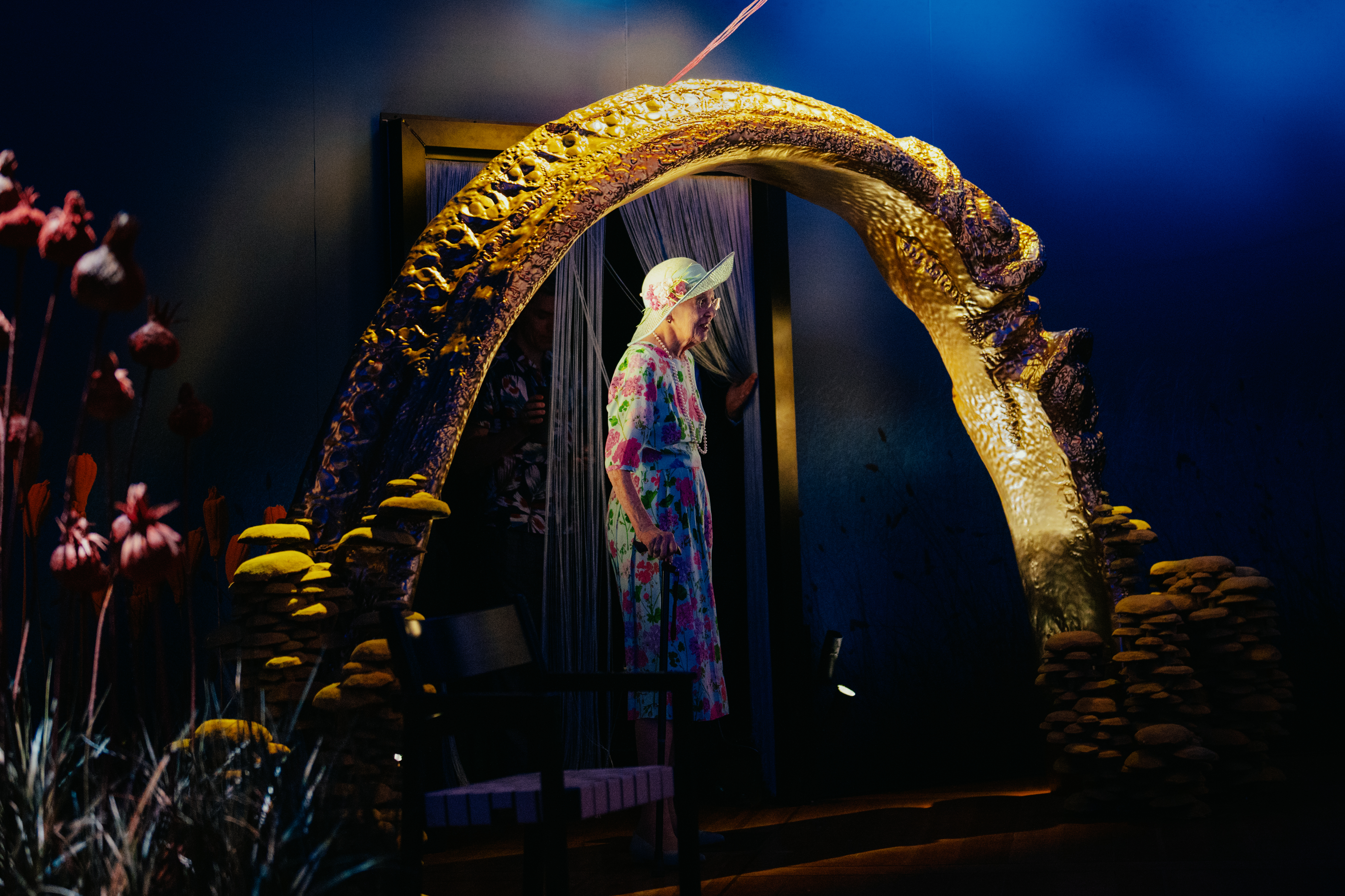 Vølven fortæller Odin, og os gæster i udstillingen, historien om Ragnarok: det er en historie om en verden, hvor mennesket er dybt afhængige af naturen omkring sig. Det er en historie om angsten for, hvad der vil ske, hvis kaos slippes løs i verden – eller hvis vi turde slippe kaos løs inde i os selv. Forhåbentlig bringer denne rejse os på én gang tættere på vikingerne – og får os til at se os selv i spejlet.