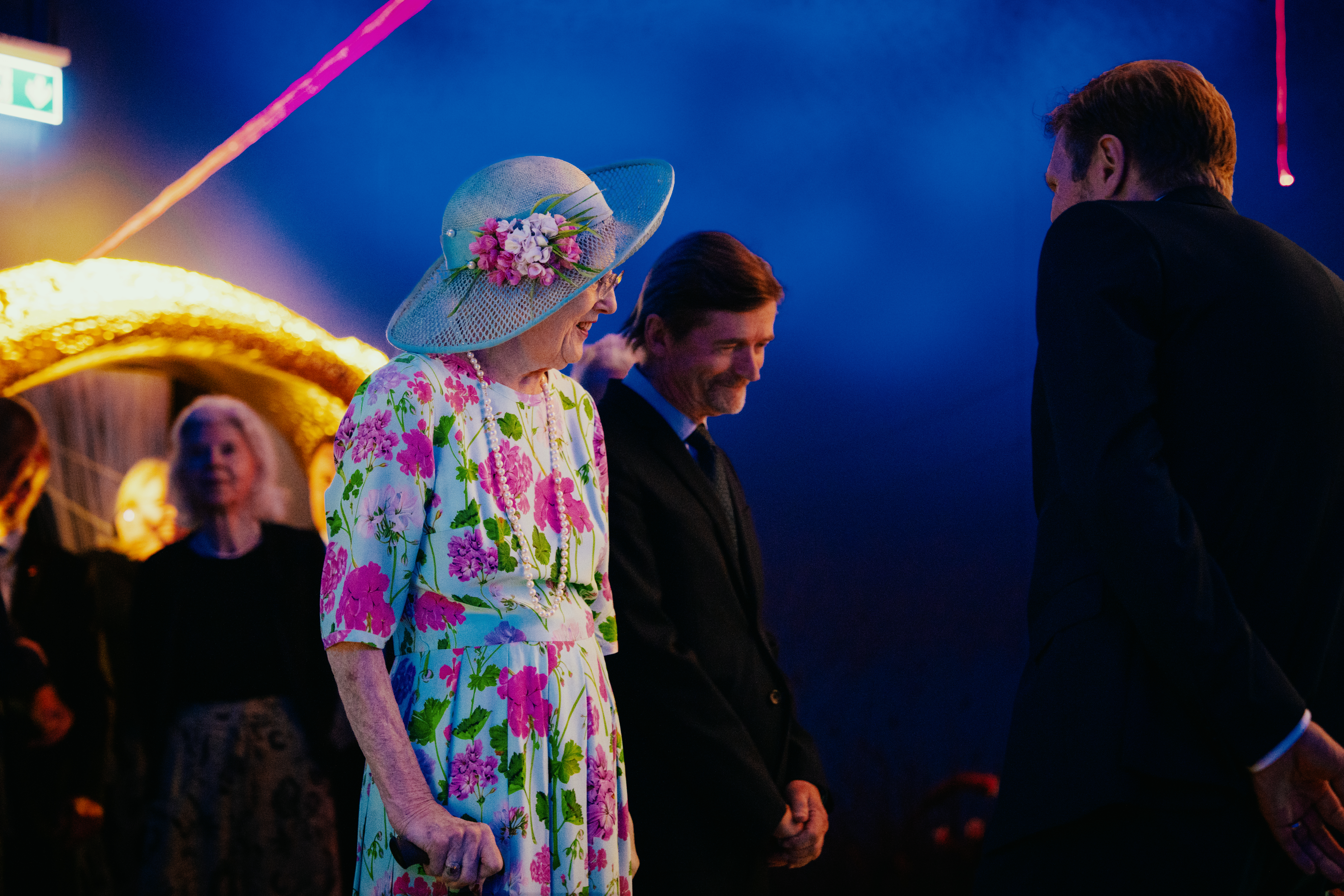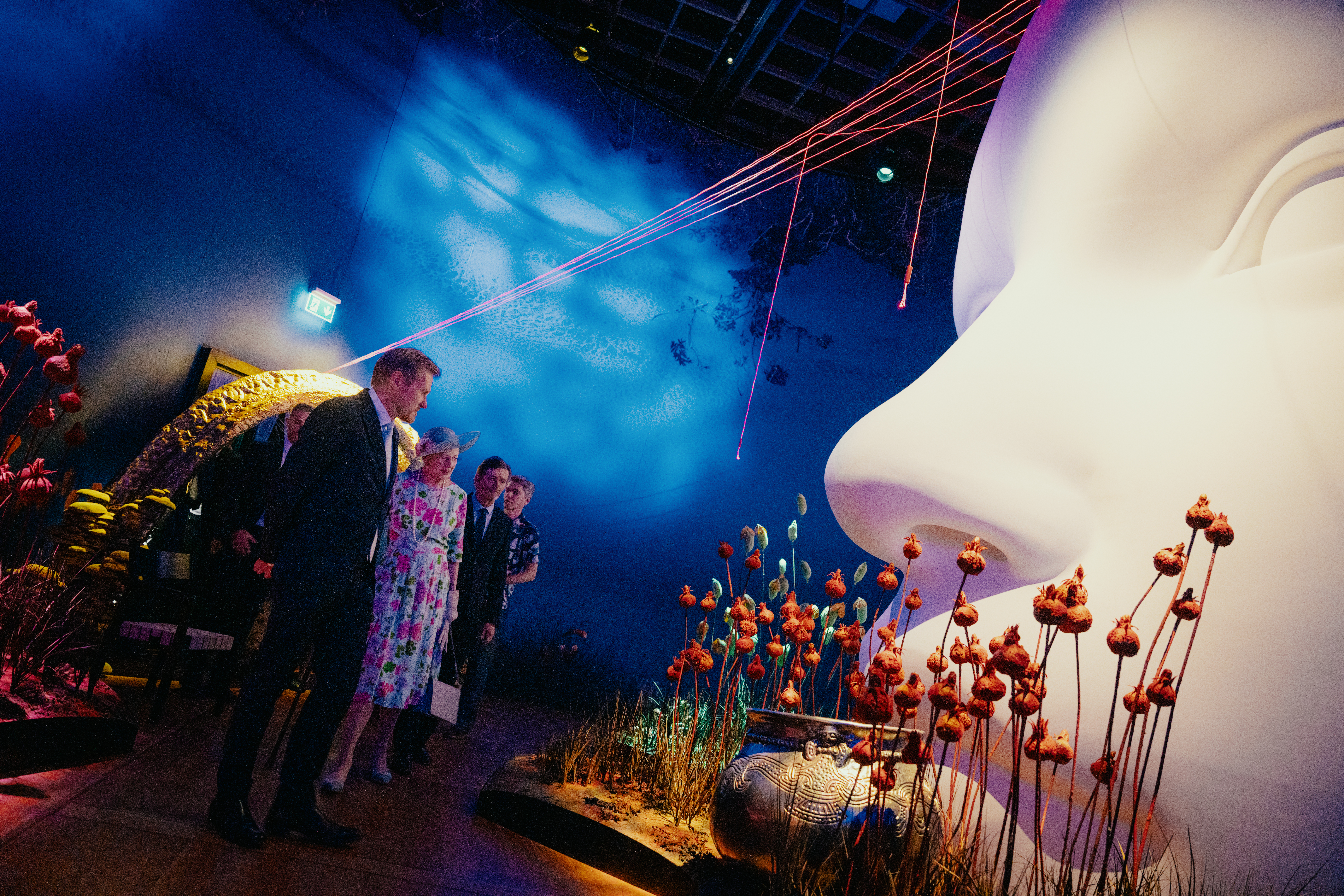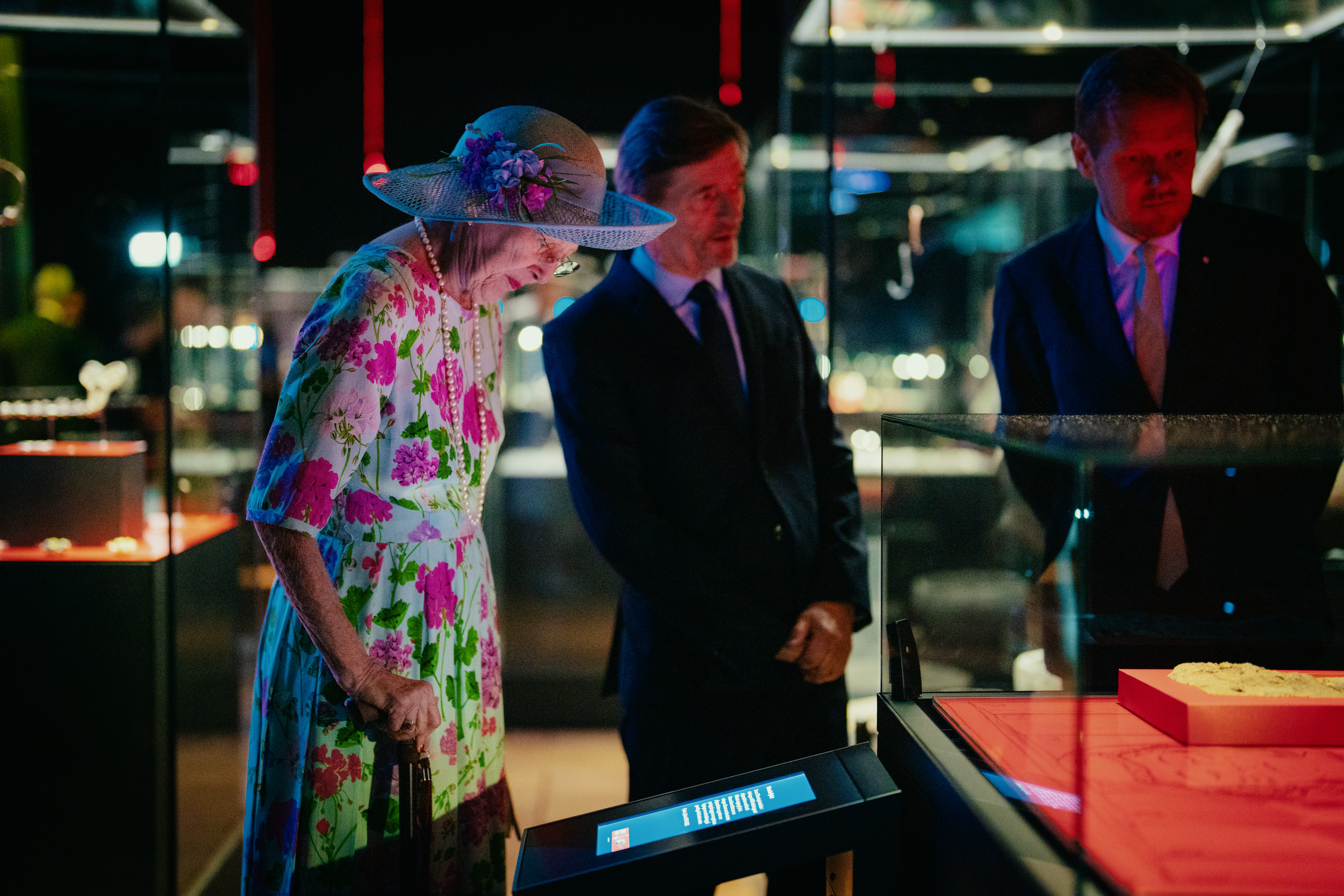 Kl. 15.10: H.M. Dronningen vises rundt i udstillingen af museumsinspektør Peter Pentz og Det Kongelige Teaters direktør Kasper Holten.