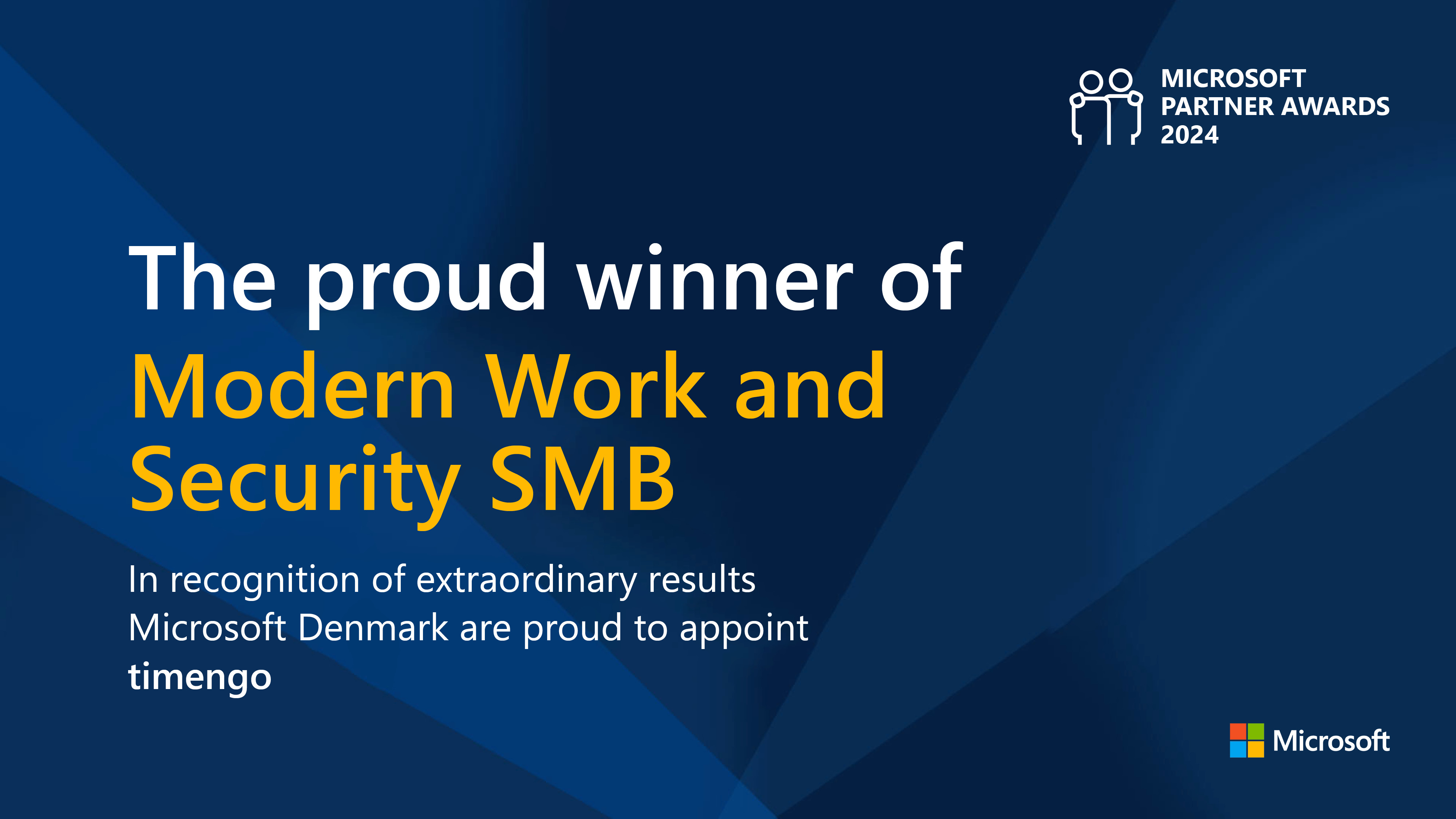 I forbindelse med udnævnelsen af årets Microsoft partnere, blev prisen for bedste SMV sikkerhedspartner givet til timengo A/S for en banebrydende indsats for at højne sikkerheden hos små og mellemstore virksomheder i Danmark.
