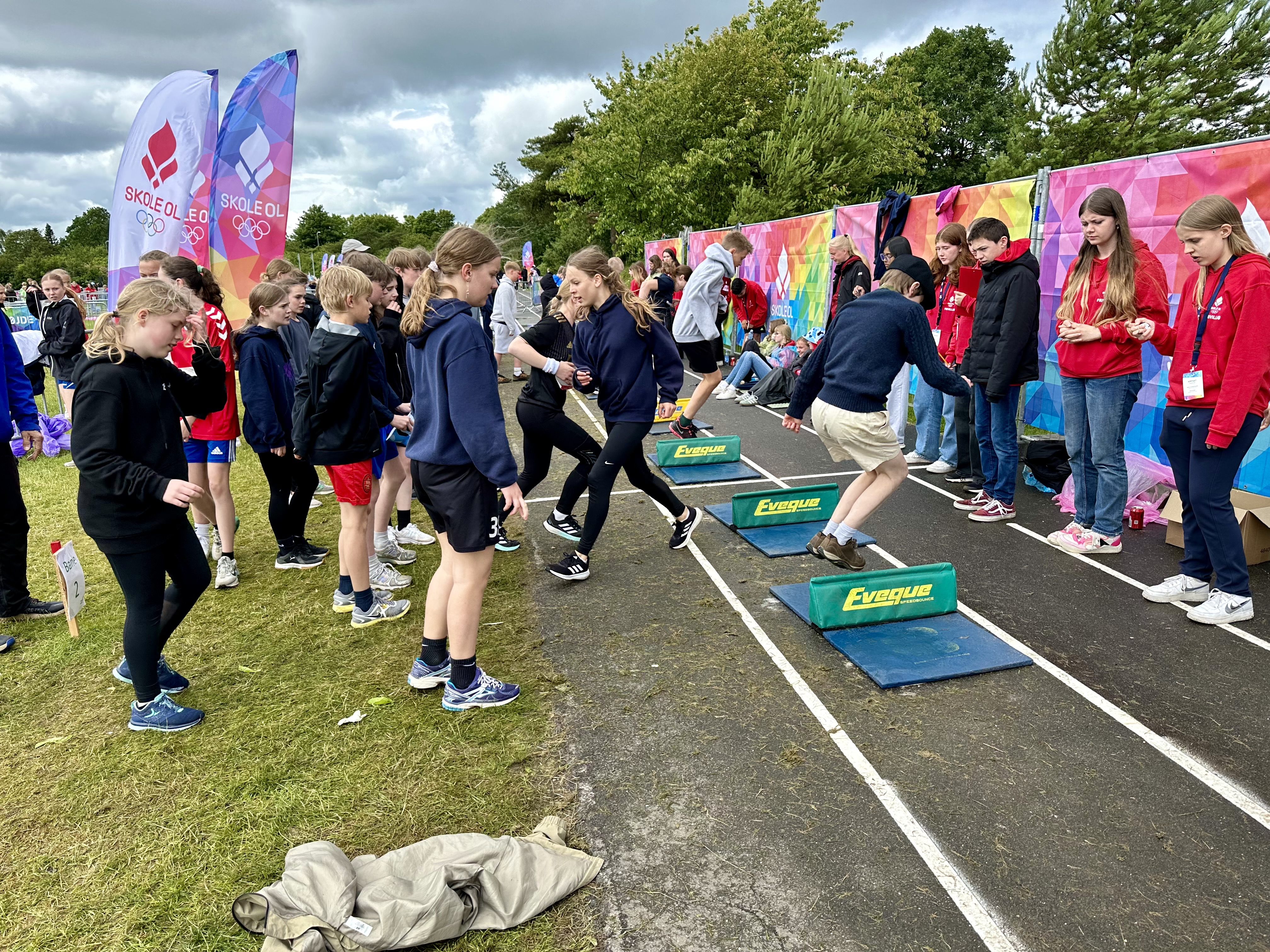 Til dagens Skole OL på Drive var der stillet udstyr, merchandise og medaljer til rådighed fra Billund Kommune og DIF Skole OL. Der var grin og glæde at spore over hele linjen i de forskellige discipliner, hvor eleverne til sidst sluttede dagen af med medaljeoverrækkelse og nationalmelodi.
