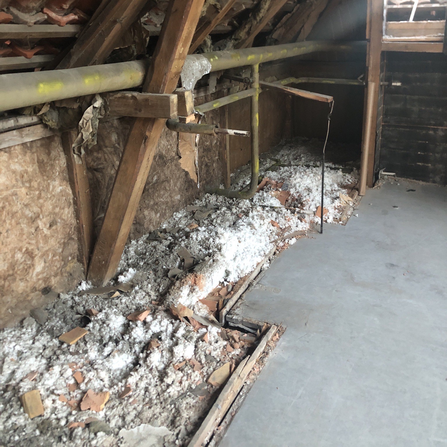 ”Vi var blevet hyret til at lave en miljøsanering, hvor vi skulle fjerne loftsisolering og teglsten, men under arbejdet fandt vi varmerør i skunken og spidsloftet, som var indhyllet i asbest,” siger Anya Mortensen, direktør og ejer af HTO Nedrivning, og tilføjer: