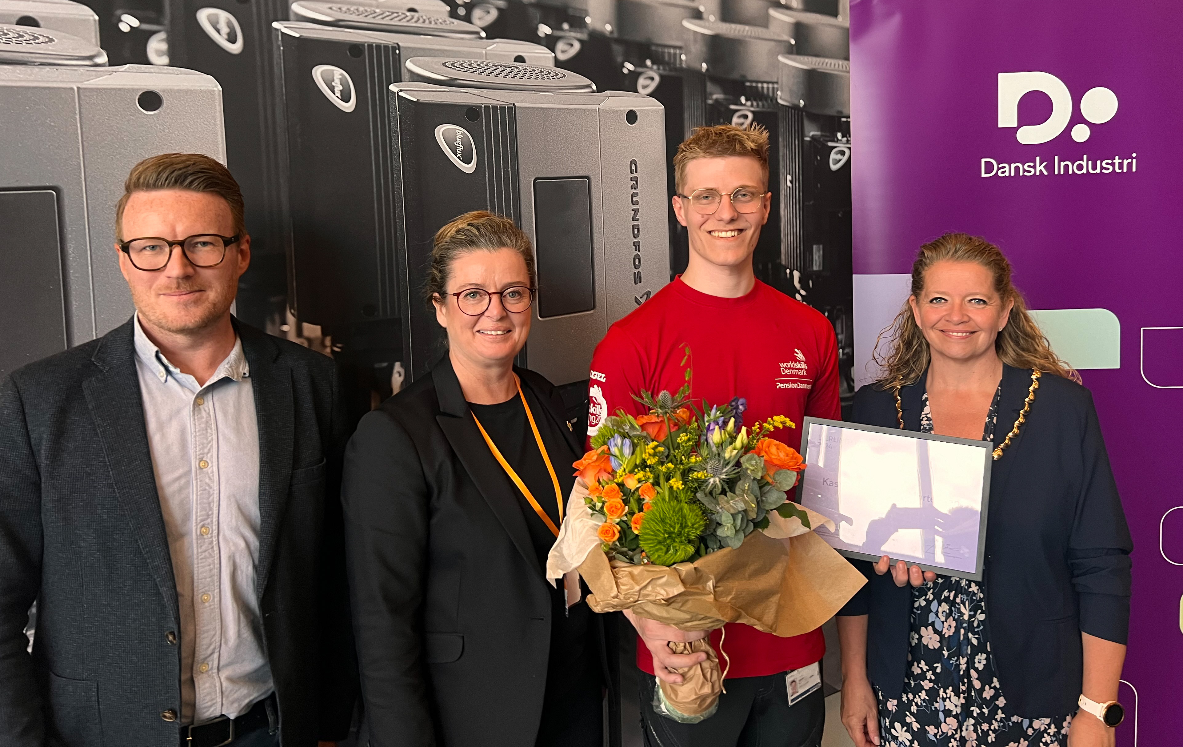 I dag overrakte Pia Grandelag fra DI Silkeborg-Viborg et diplom og et ur til Årets Lærling i Silkeborg-Viborg på Grundfos i Bjerringbro. Borgmester i Silkeborg Helle Gade holdt talen for Kasper Bergmann Mortensen, der sidste år vandt DM i Skills.