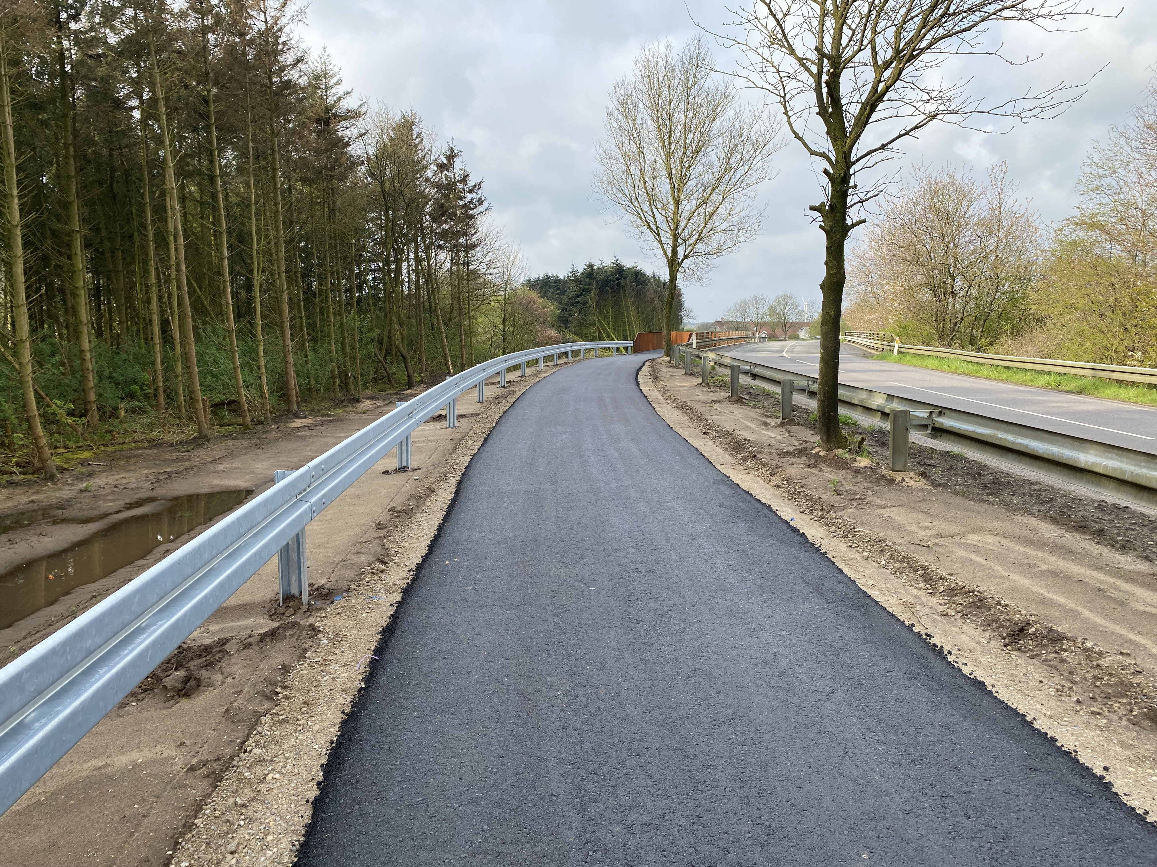 De eksisterende cykelstier i St. Darum og Bramming kobles nu sammen af en ny dobbeltrettet cykelsti på næsten 5 km, som snor sig mellem de to byer. Udover etableringen af selve cykelstien er der flere steder etableret nye løsninger. Blandt andet er der anlagt en ny cykelstibro over Varde Hovedvej, cykelstien er ført under Tjæreborgvej på et repos og ved Nørrebyvej er der etableret en krydsningshelle, så skoleelever sikkert kan krydse Videkærvej for at benytte cykelstien. Anlægsarbejdet begyndte i september 2023, og trods udfordrende vejr er arbejdet blevet afsluttet til tiden.