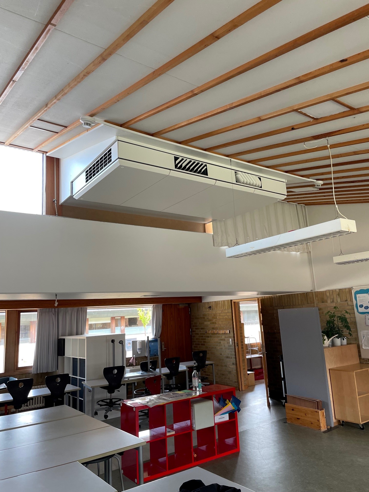 Det betyder, at de kører uafhængigt af hinanden i hvert sit lokale med intelligent behovsstyring – og uden at være forbundet af kanaler. Anlæggene på Ellemarkskolen er lofthængte, og skolen skal derfor heller ikke ud at finde - kvadratmeter til anlæggene: