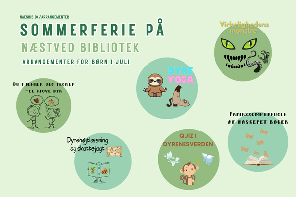 Børnebiblioteket i Næstved bugner af sommerferieaktiviteter i juli måned, når vi afholder hele 22 arrangementer med fokus på dyrenes verden. Der venter mange gode oplevelser til de børn, der vælger at bruge noget af deres ferie på biblioteket.