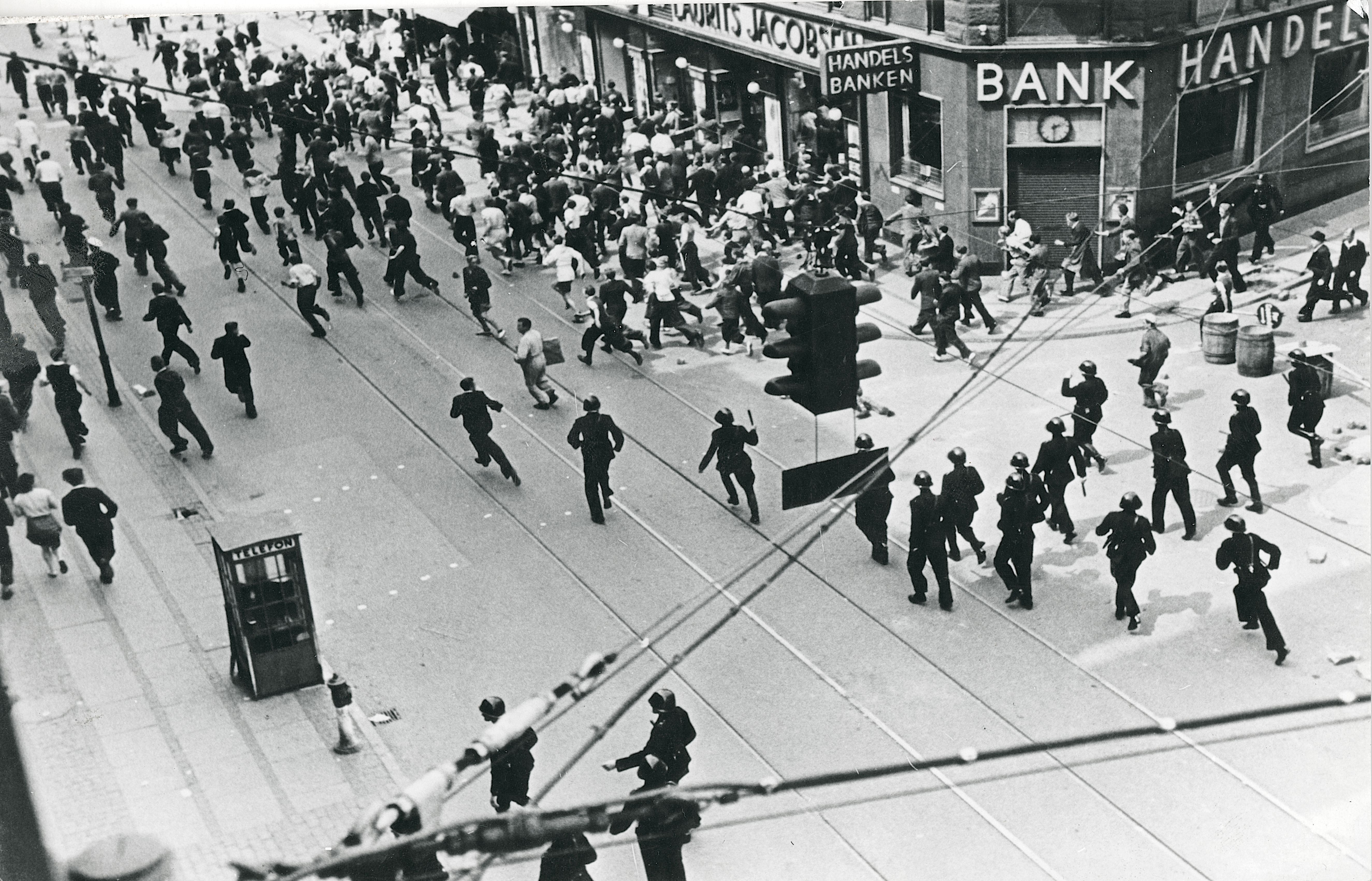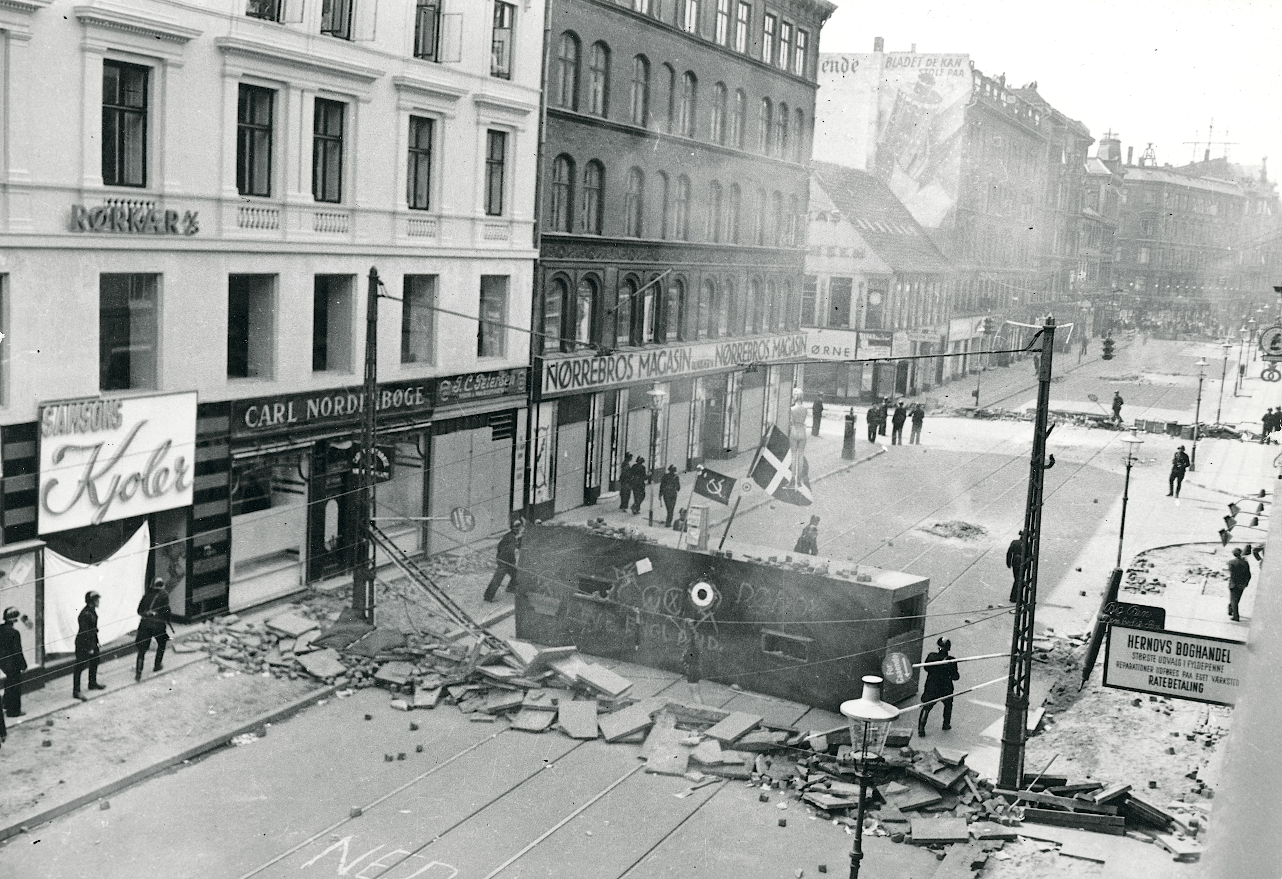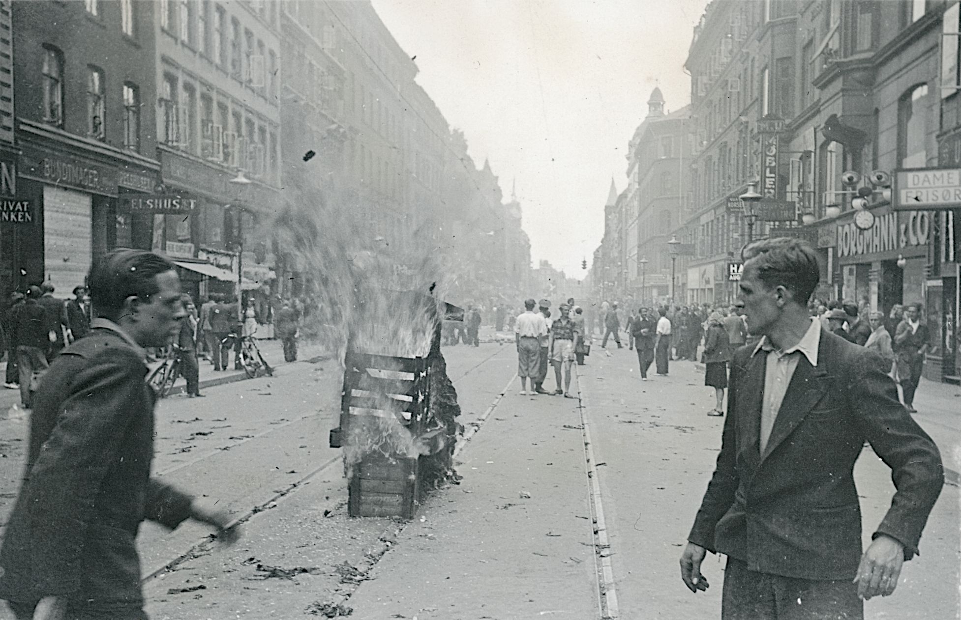 For under Folkestrejken i juni/juli det år stod gaderne i brand på blandt andet Nørrebro, københavnerne byggede barrikader, mens tungt bevæbnede tyske soldater skød mod folk.