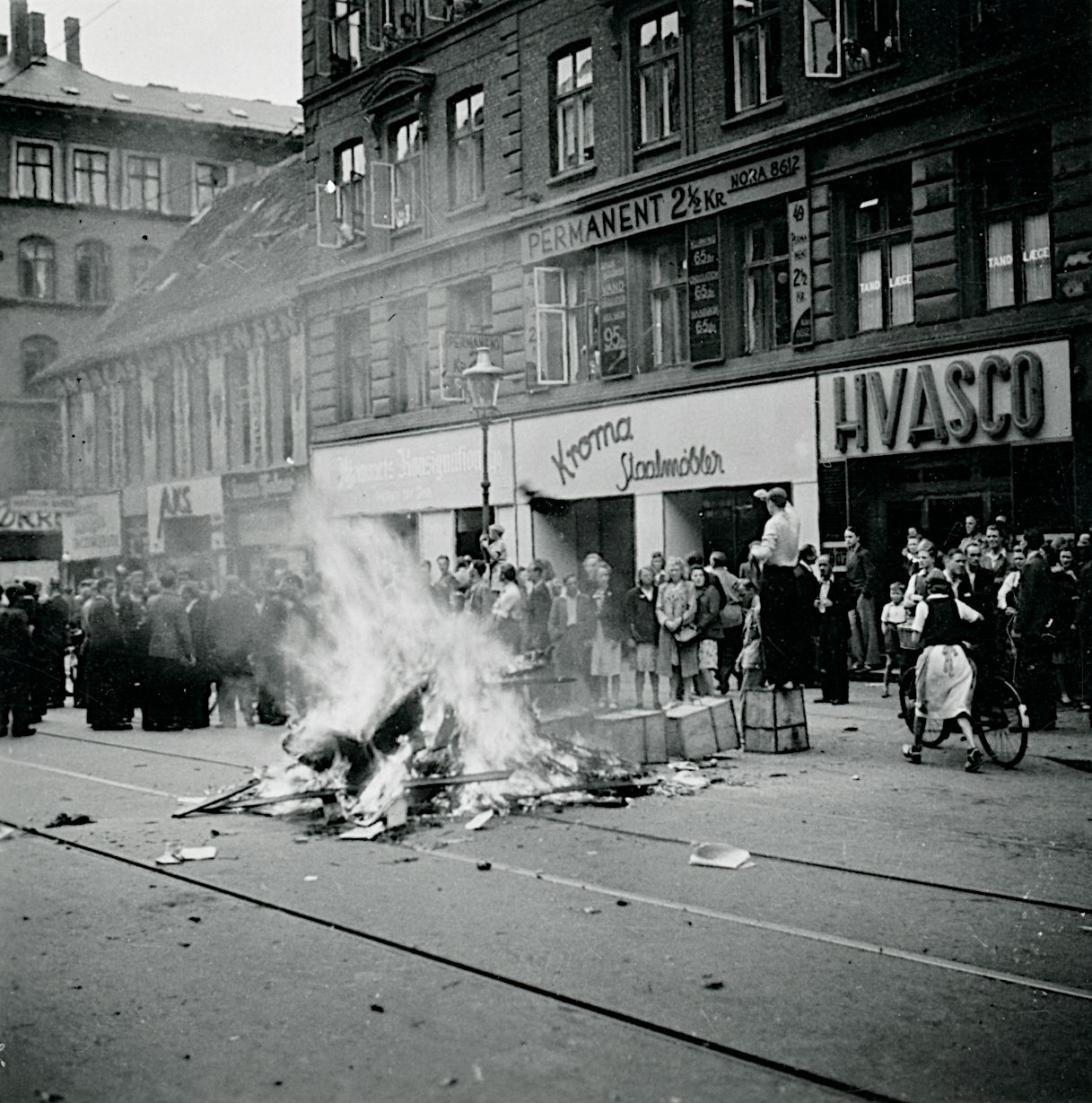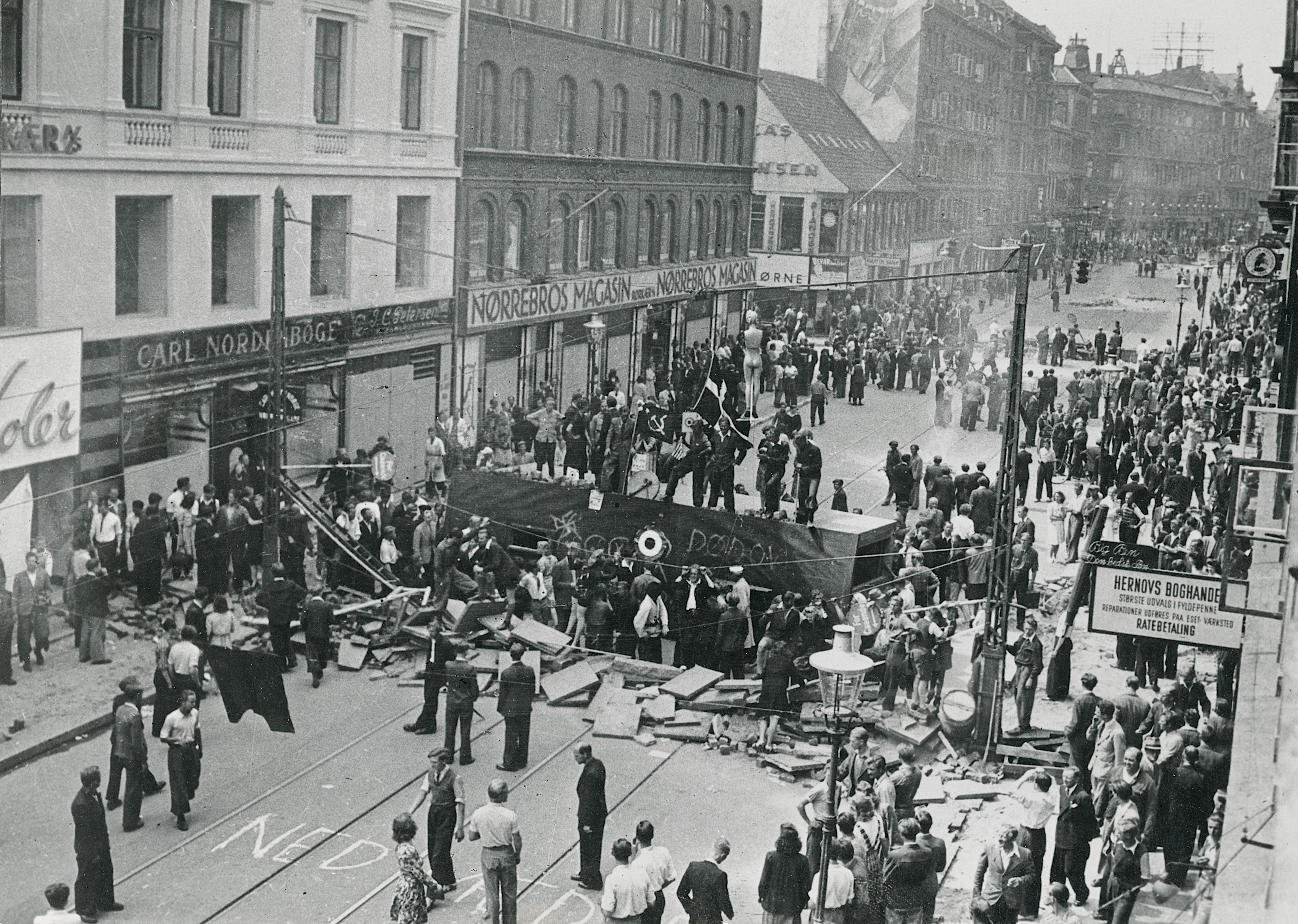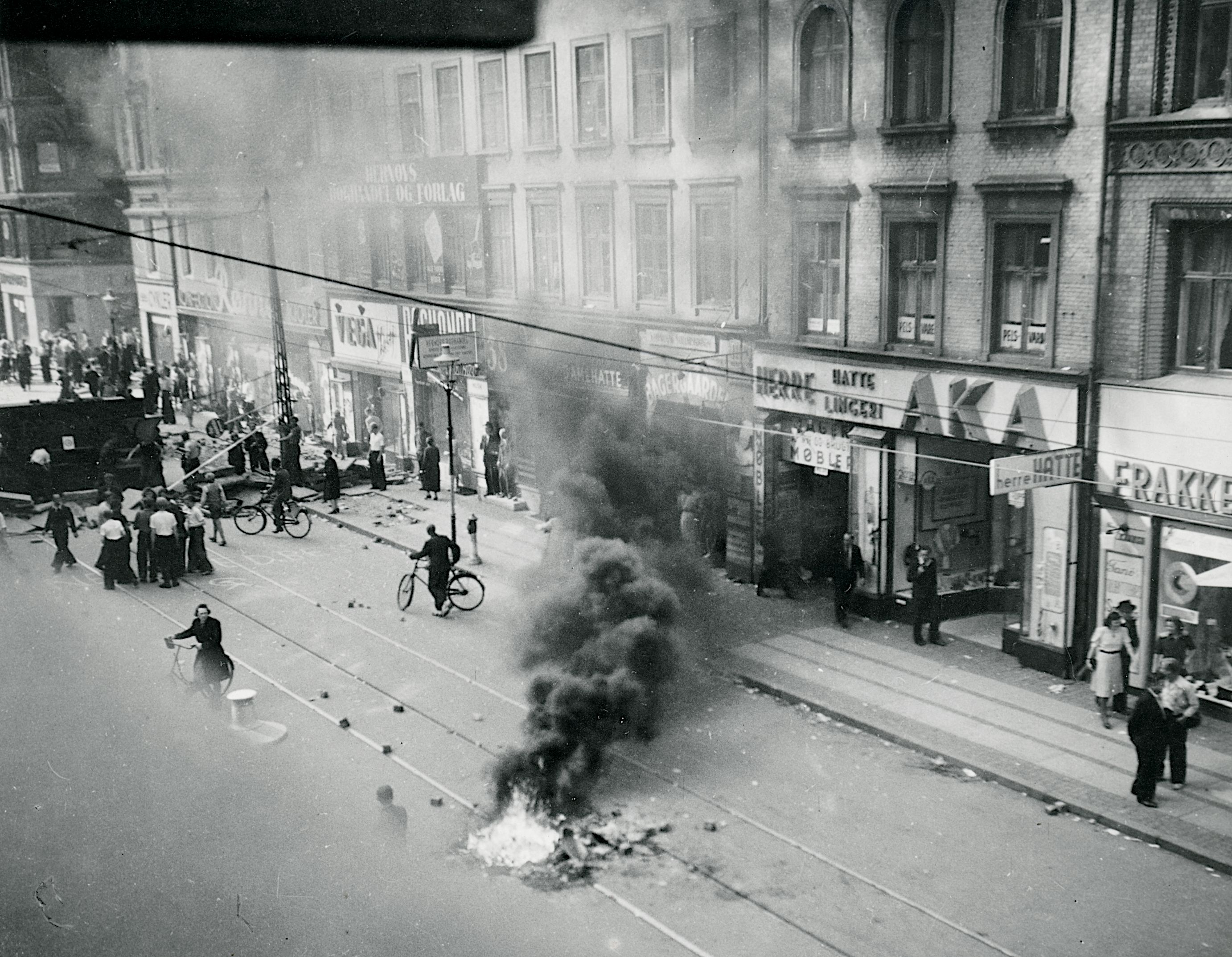 For under Folkestrejken i juni/juli det år stod gaderne i brand på blandt andet Nørrebro, københavnerne byggede barrikader, mens tungt bevæbnede tyske soldater skød mod folk.