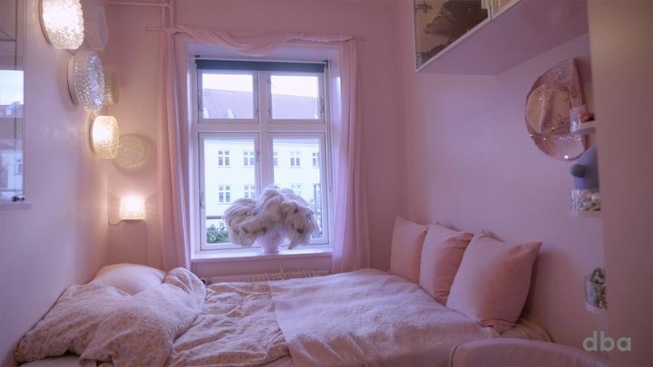 Her er fordelen ved, at Signes soveværelse er helt lyserødt