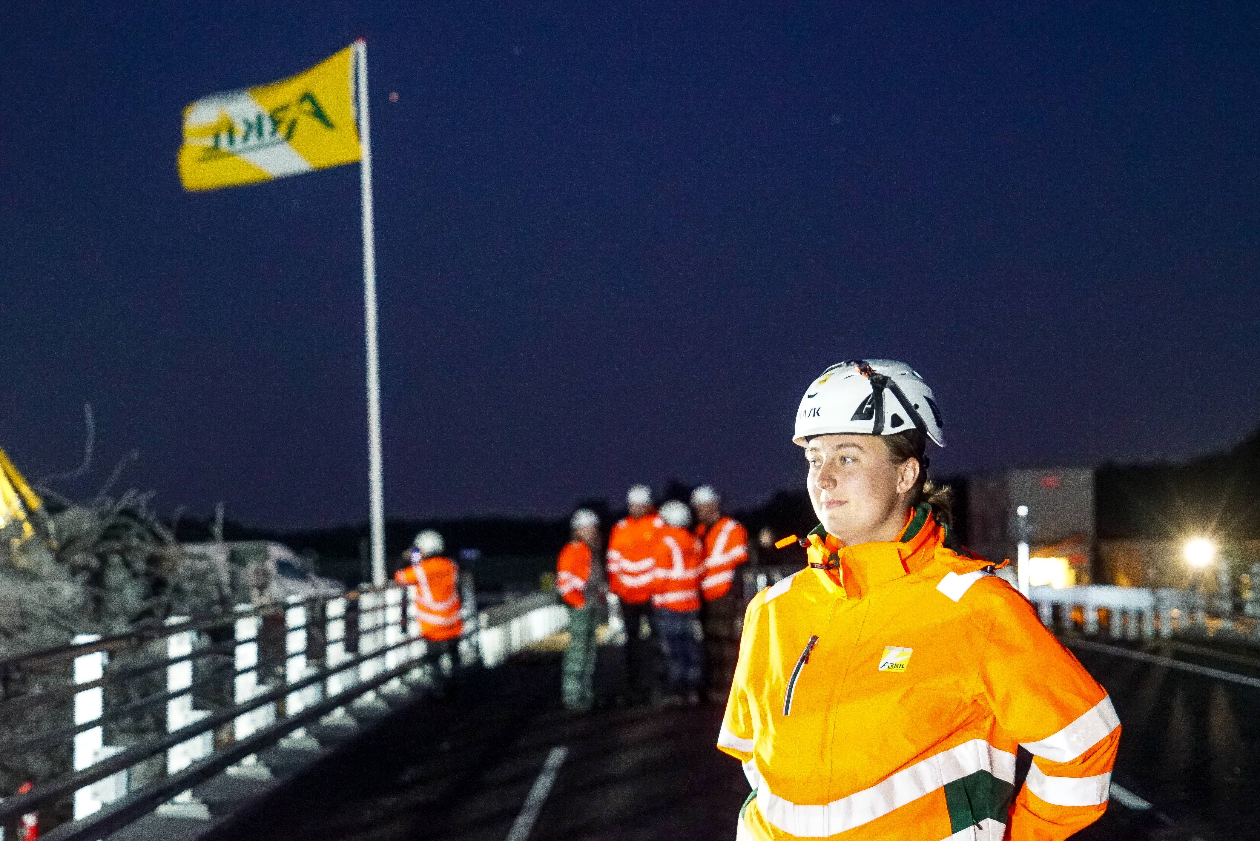 Igennem det seneste år har flere af Arkils afdelinger arbejdet sammen om at opføre en ny og længere bro, så der er plads til at udvide motorvejen. I sidste uge var den nye bro klar til at overtage trafikken, og sammen med projektchef Jimmy Rahbek Rasmussen stod Mille klar til at sørge for, at den stramme tidsplan for nedrivningen blev overholdt.